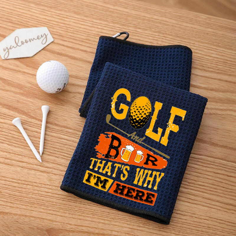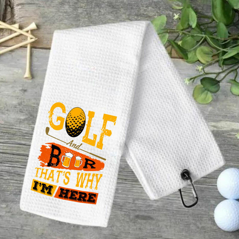 吊り下げループ付きで持ち歩きに便利なゴルフタオル!