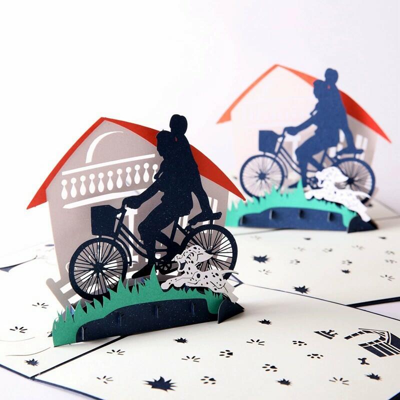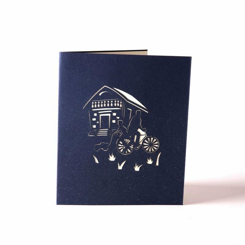 3D 立体的 ギフトカード 自転車 散歩 父の日 飛び出す ポップアップカード