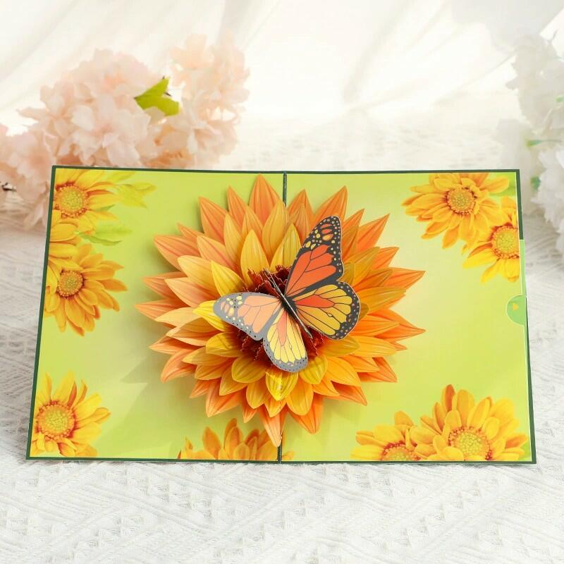 3D 立体的 ギフトカード サンフラワー ひまわり バターフライ 飛び出す ポップアップカード