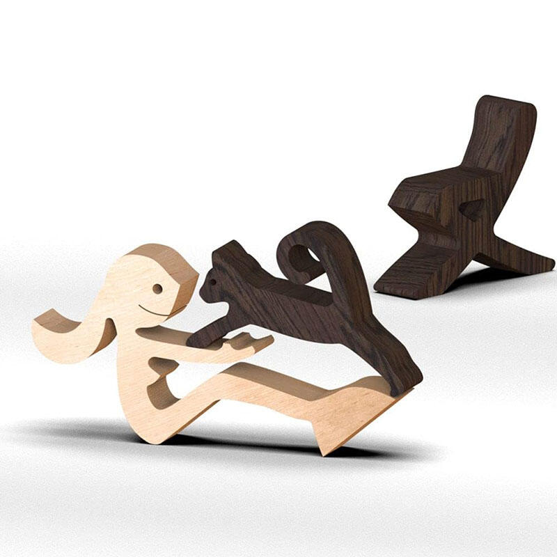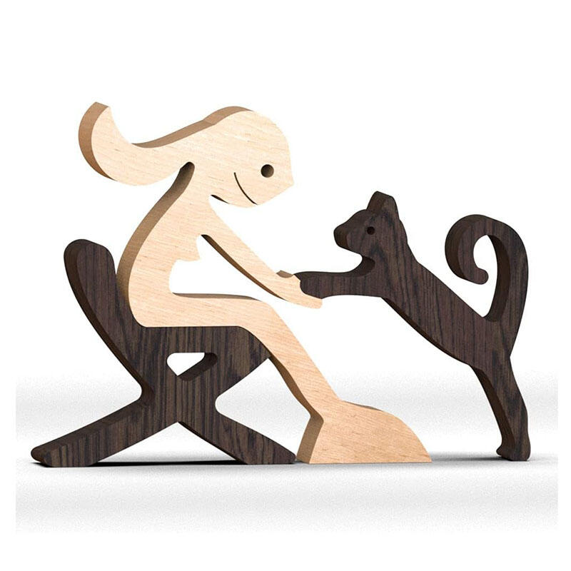 猫ちゃんと飼い主さんが、ぴったり仲良くくっついた木製オブジェです♪