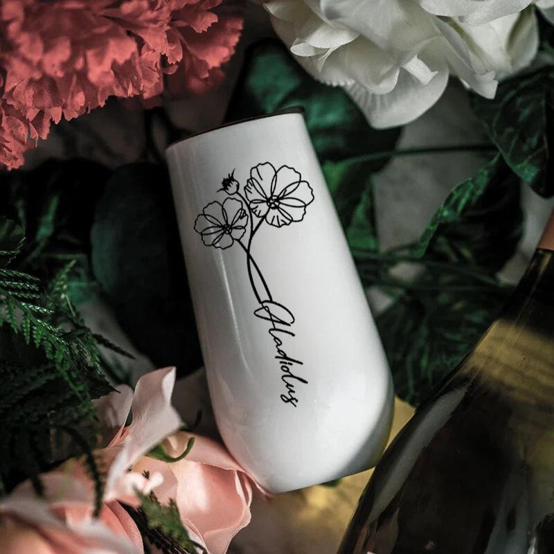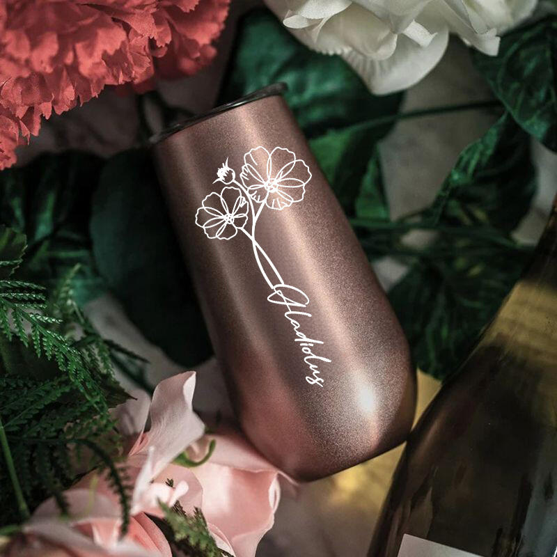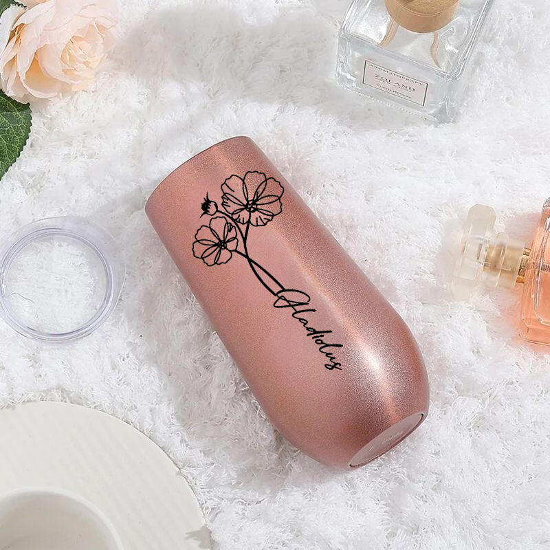 お名前、写真、誕生花を入れてオリジナルなタンブラーを作ることができます。