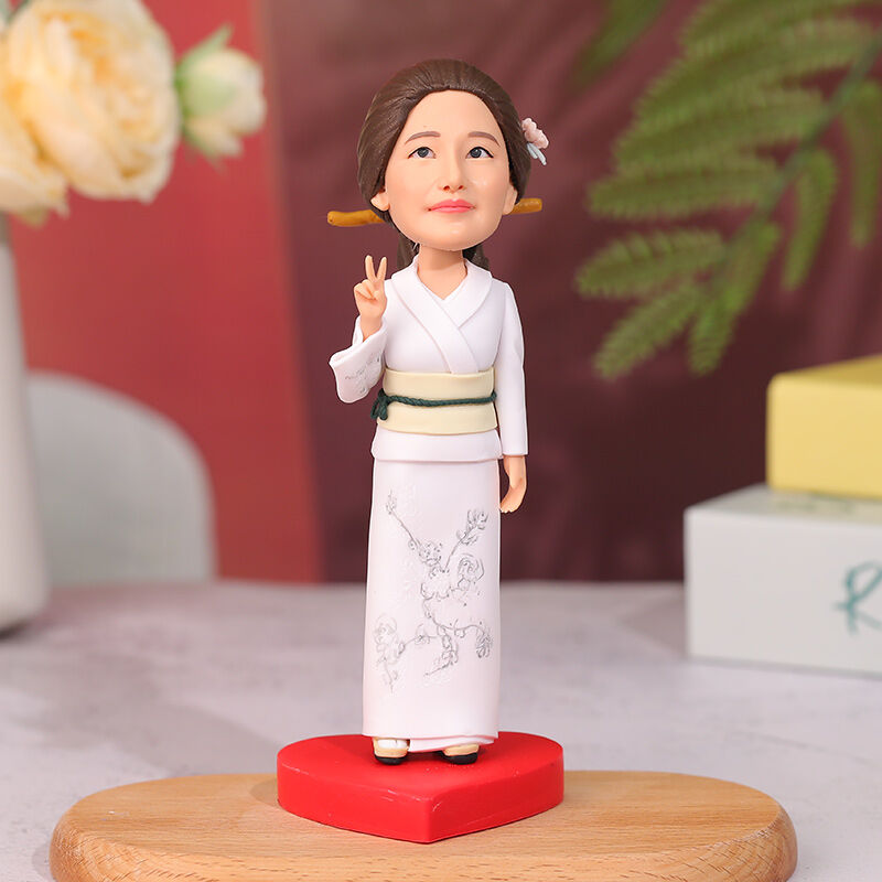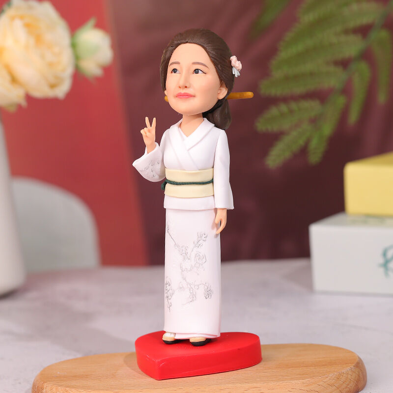 ご注意:こちらの商品は頭のみの制作になりますが、もし全身(頭&服&靴&ポーズ)を制作希望の場合には、ホームページの一番下のメールアドレスに連絡をお願い致します。また着物の細かな柄により、追加料金がかかる場合があります。あらかじめご了承ください。