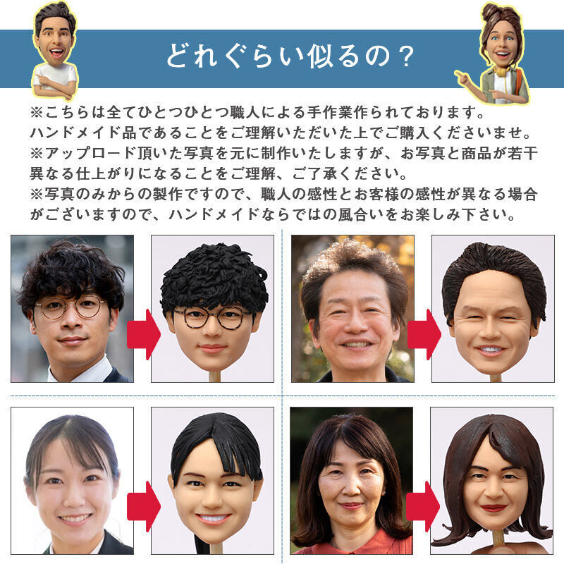 ①こちらは全てひとつひとつ職人による手作業で完全オーダーメイドのボブルヘッドが作られております。ハンドメイド品であることをご理解いただいた上でご購入くださいませ。