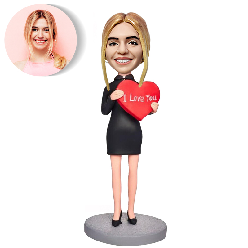 カスタマイズ 顔 似顔絵 ボブルヘッド 首ふり 人形 フィギュア そっくり ハートを持つ女性