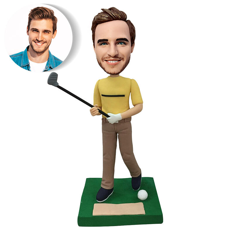 カスタマイズ 顔 似顔絵 ボブルヘッド 首ふり 人形 フィギュア そっくり ゴルフをする男性
