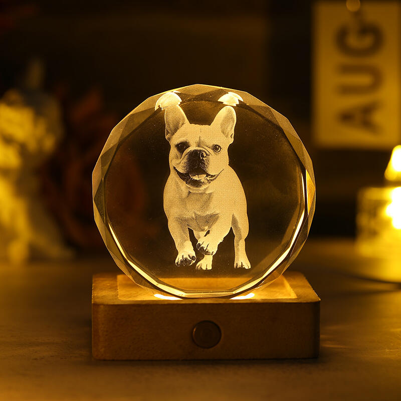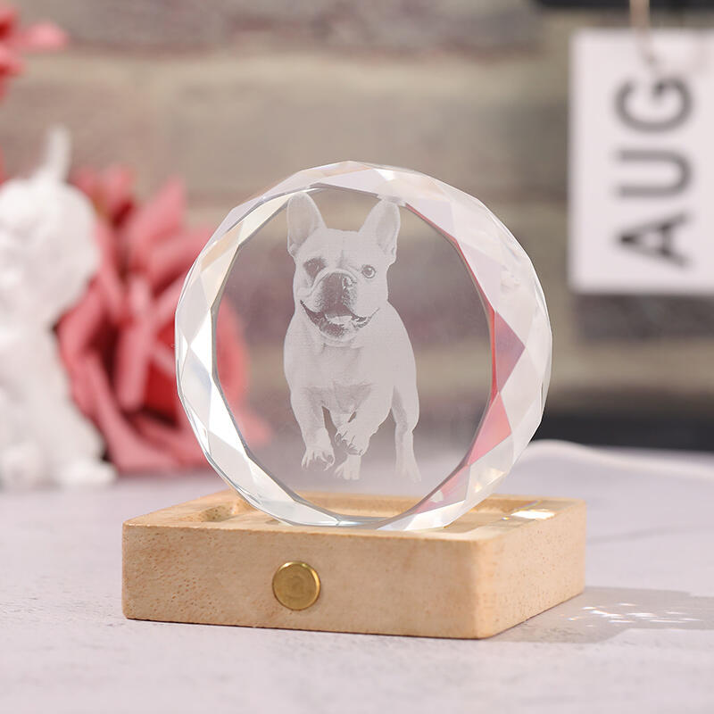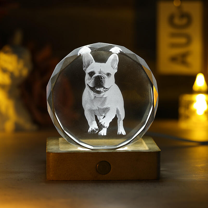 オーダーメイド 写真入り クリスタル ランプ LED台座付き ペットスケッチ ギフト