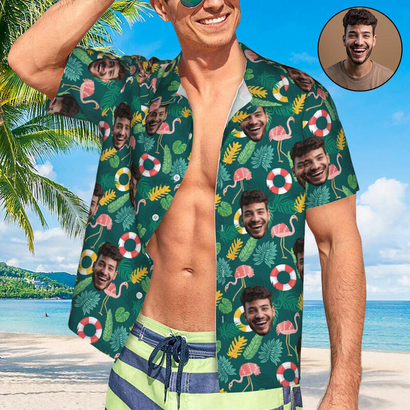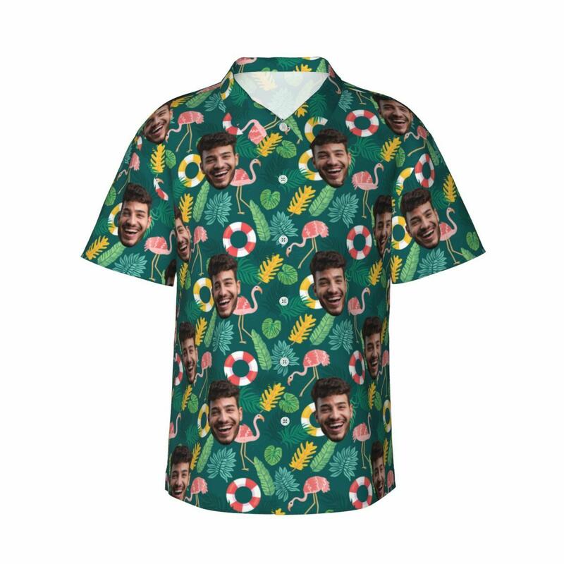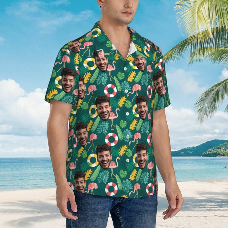 顔写真 似顔絵 総柄 ハワイアン シャツ メンズ 開襟 ポリエステル