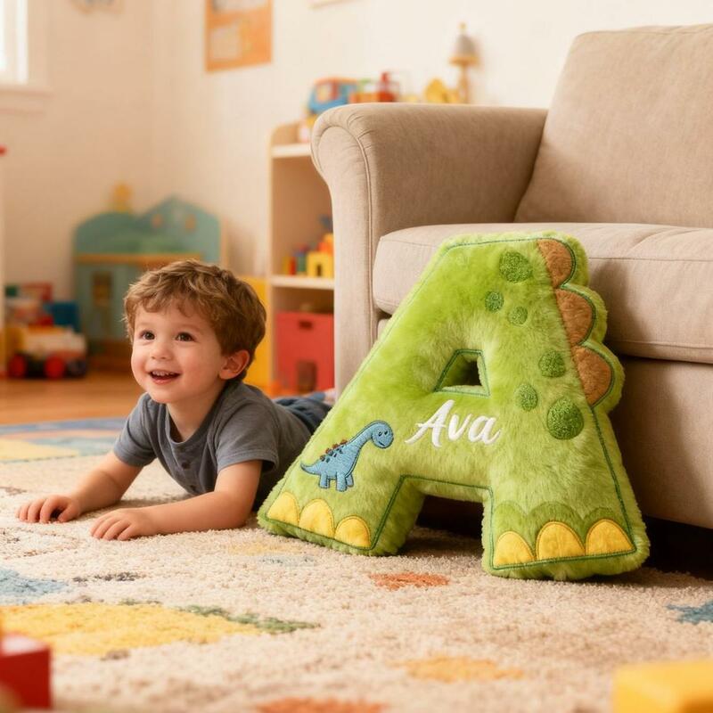 Customized Name Pillow Green Dinosaur-Themed Cartoon Fabric Decoration for Kids