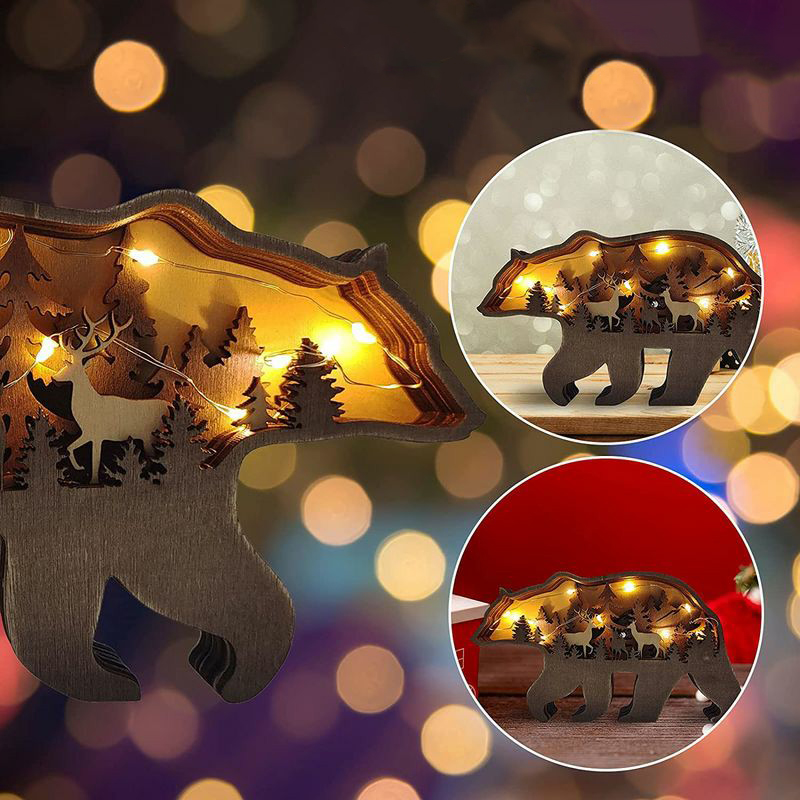 3D 木彫り 装飾 LED ライト 熊 インテリア