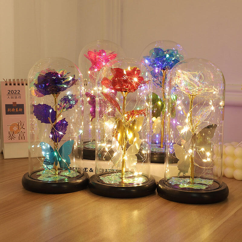 ※「ガラスドーム」はより透明度の高いガラスを使用していますのでお花が格段に綺麗に見えます。花びらと葉は環境に優しく無害な高品質のベルベットとプラスチックでできており、花のように本物です。