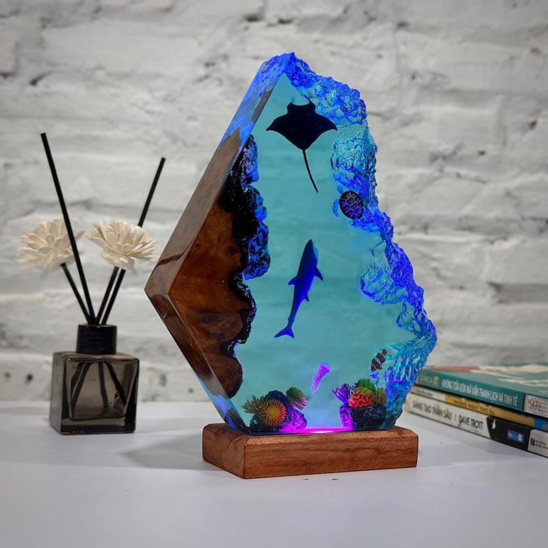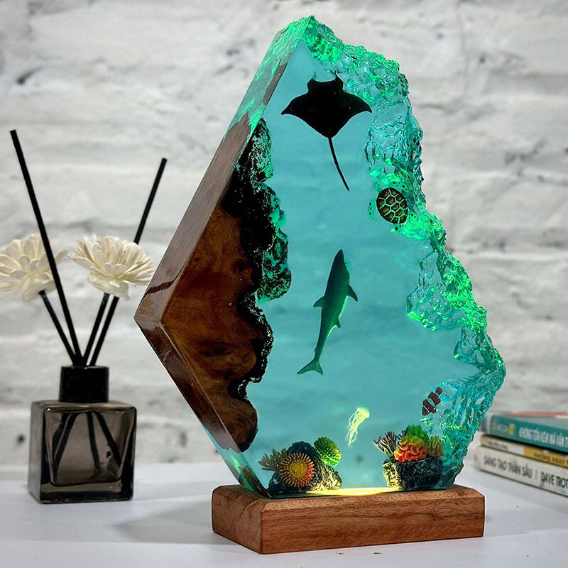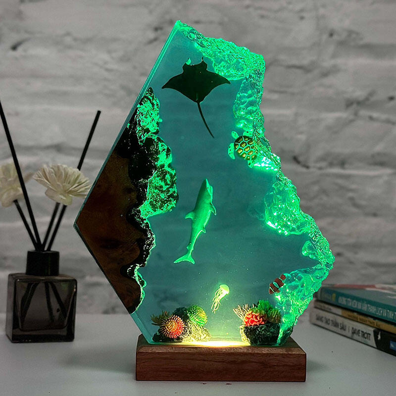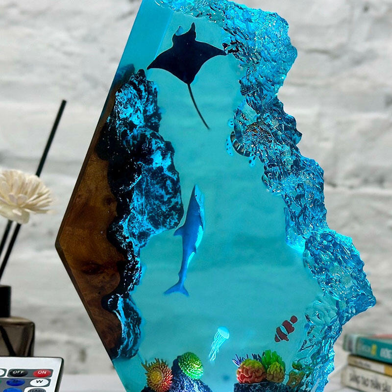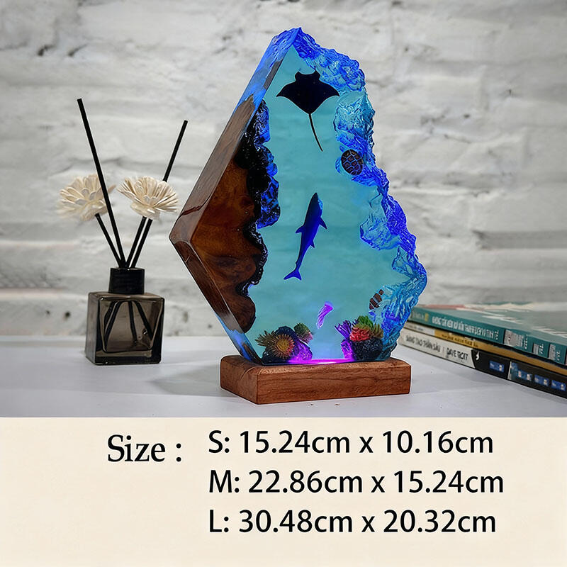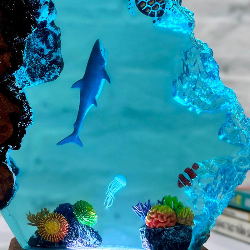 ホオジロザメ クラゲ ユニーク 樹脂 ウッド ライト 家族 ギフト