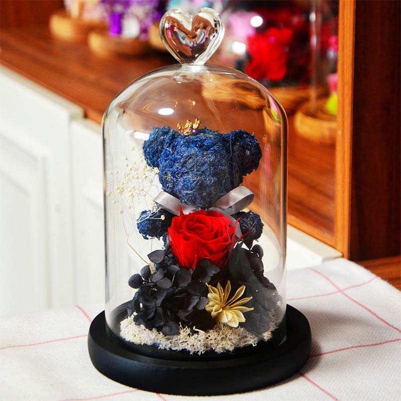 プリザーブドフラワー バラ 枯れない花 造花 薔薇 熊 ガラスドーム プレゼント