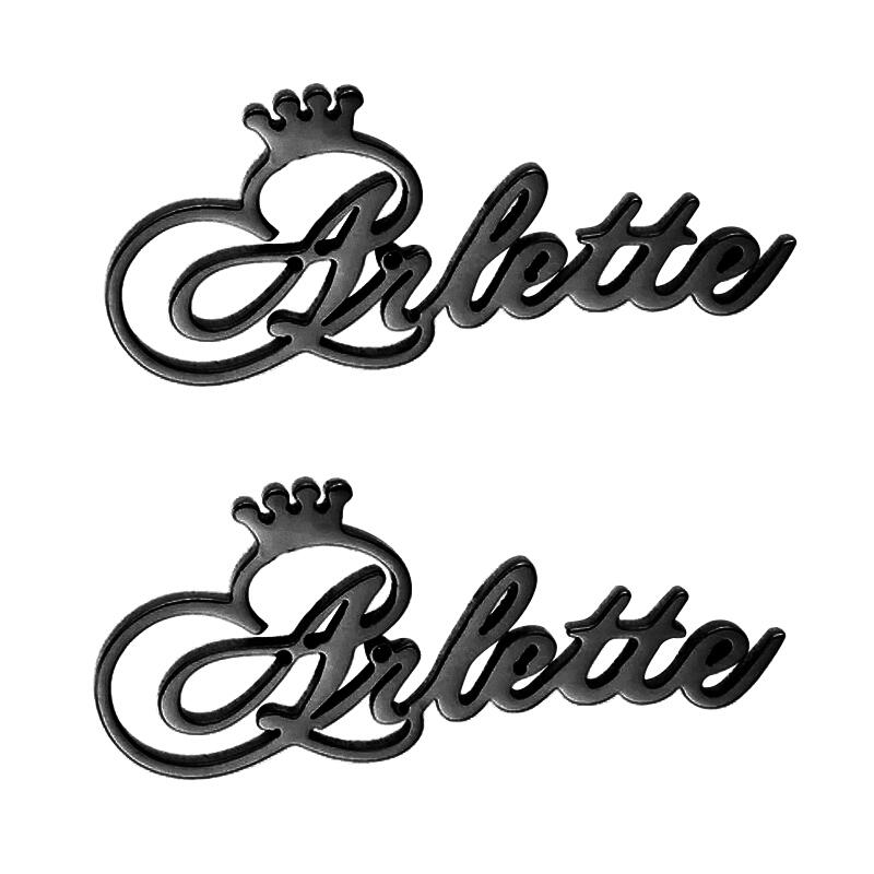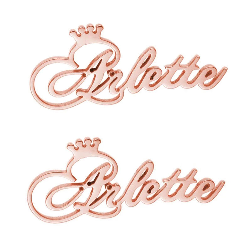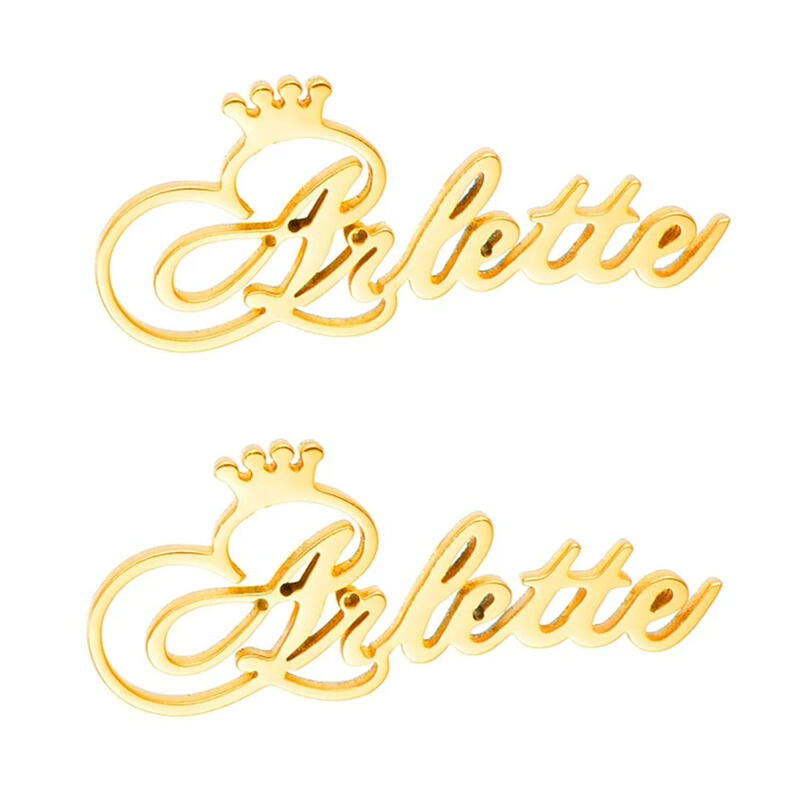 王冠のデザインのピアスで探してた結果、この商品にたどり着きました。名入りの文字も可愛く素敵です。