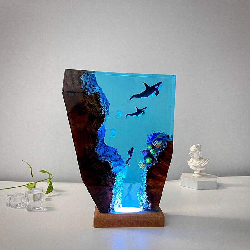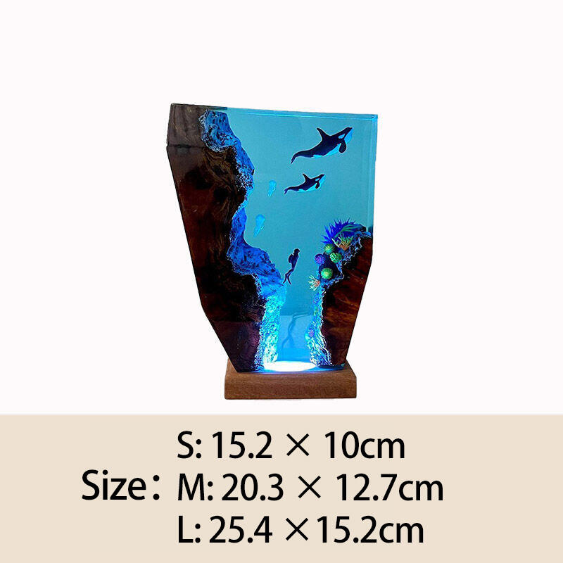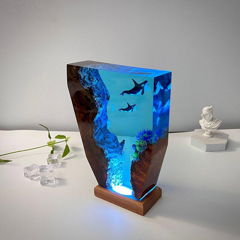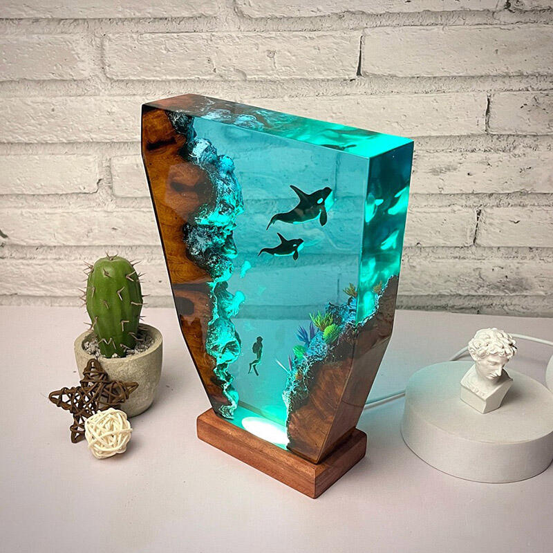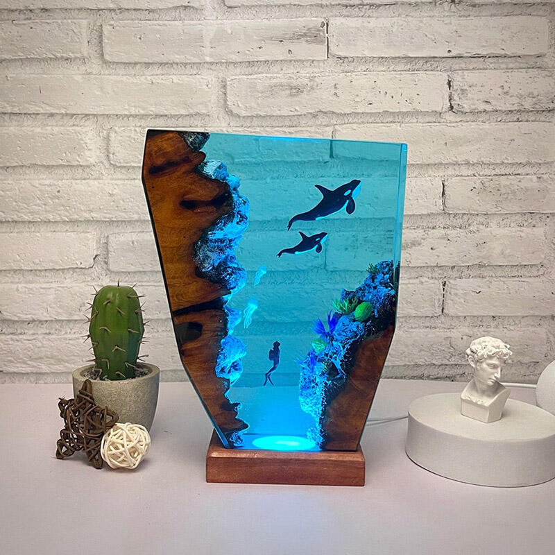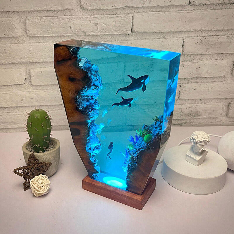 シャチ 子シャチ クラゲ親子 樹脂 ウッド デスク ランプ プレゼント
