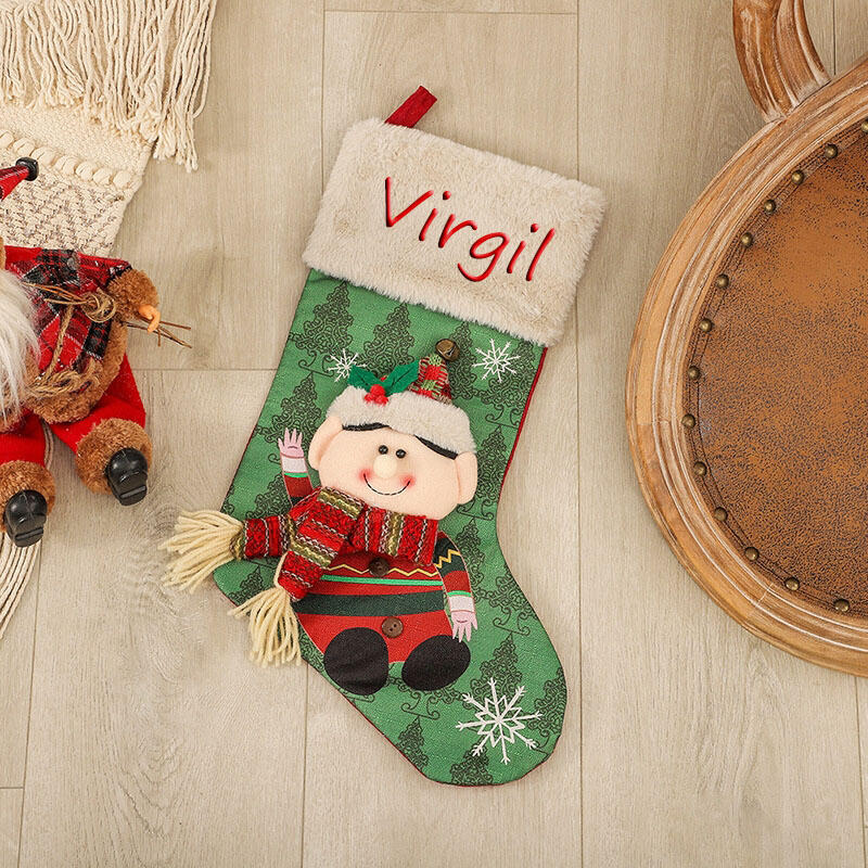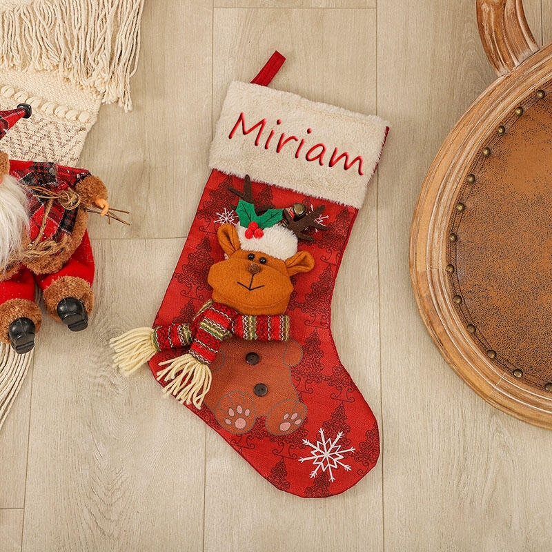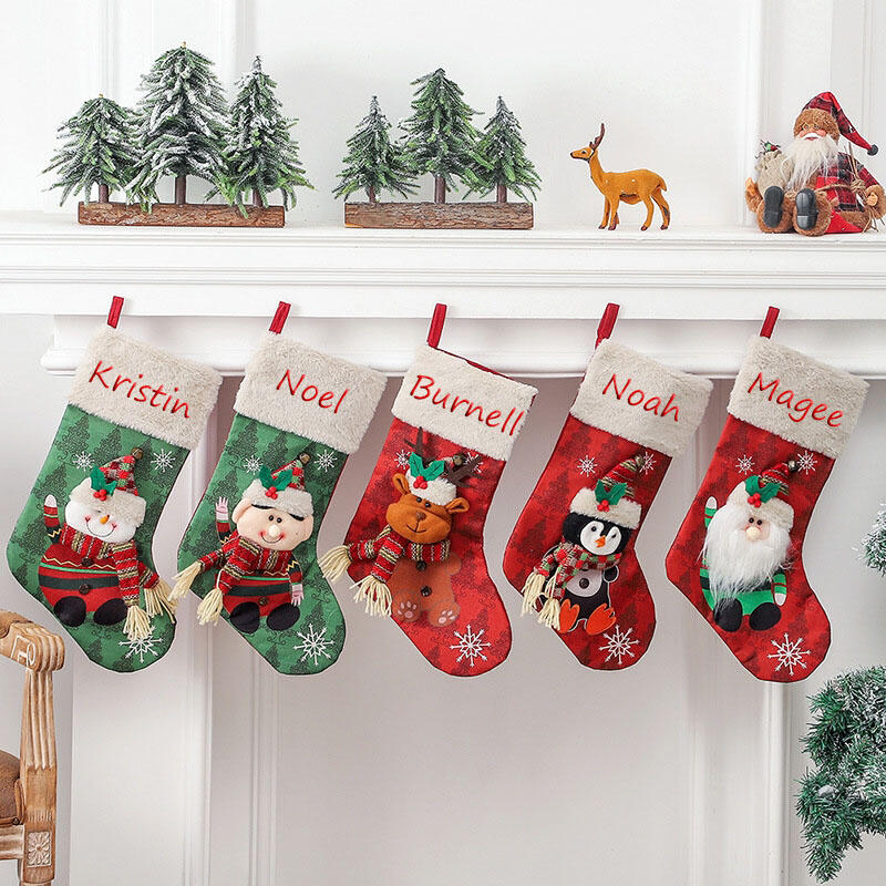 お名前刺繍入り クリスマスソックス ギフト飾り バッグ サンタ 雪だるま トナカイ ペンギン
