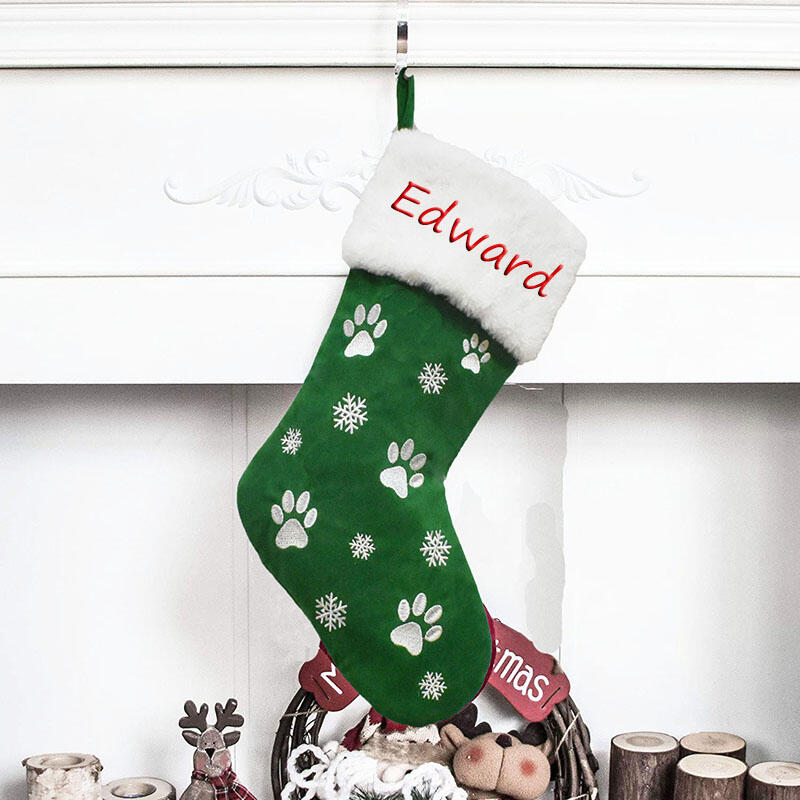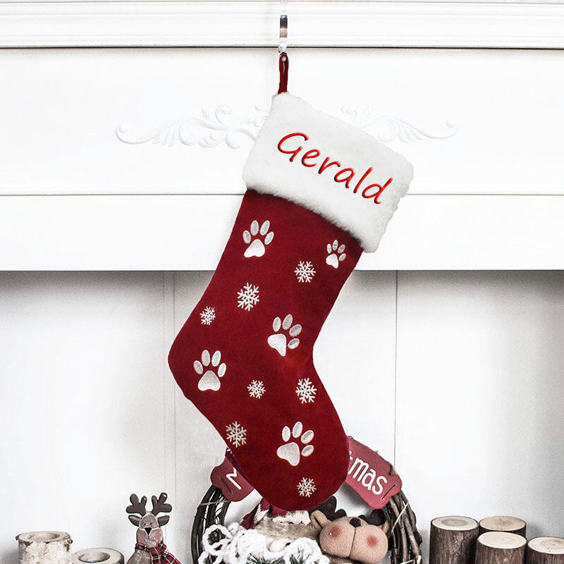 お名前刺繍入り クリスマスソックス ギフト飾り バッグスノーフレーク 肉球