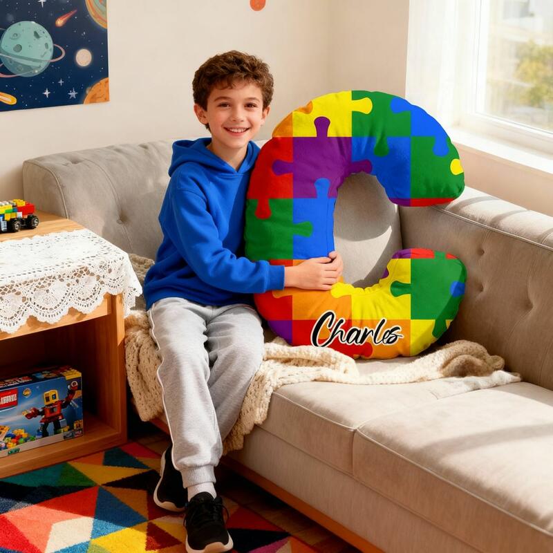 Personalized 3D Letter Pillow Colorful Puzzle Print Pillow Children's Room Home Decor for Kids