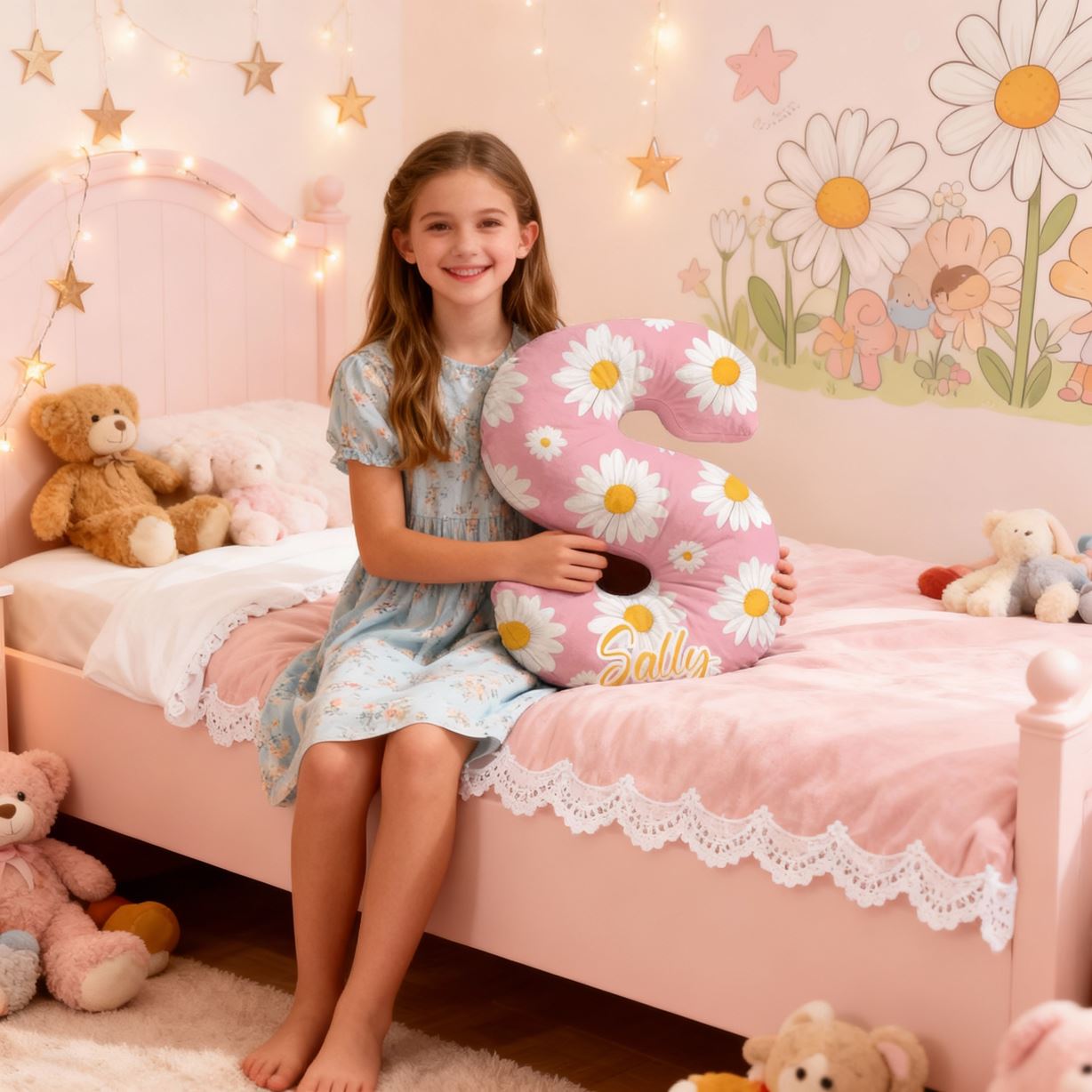 Personalized 3D Letter Pillow Daisy Pink Pillow Children's Room Decoration for Kids