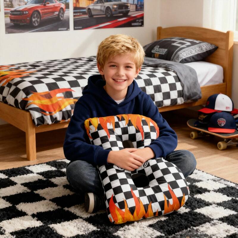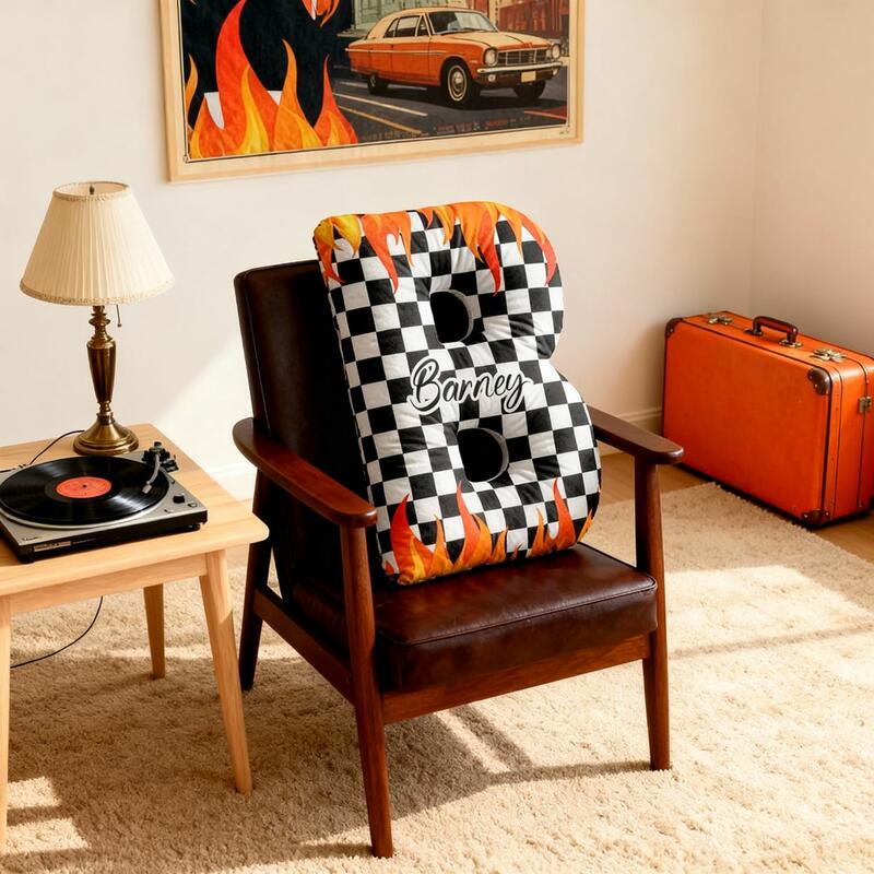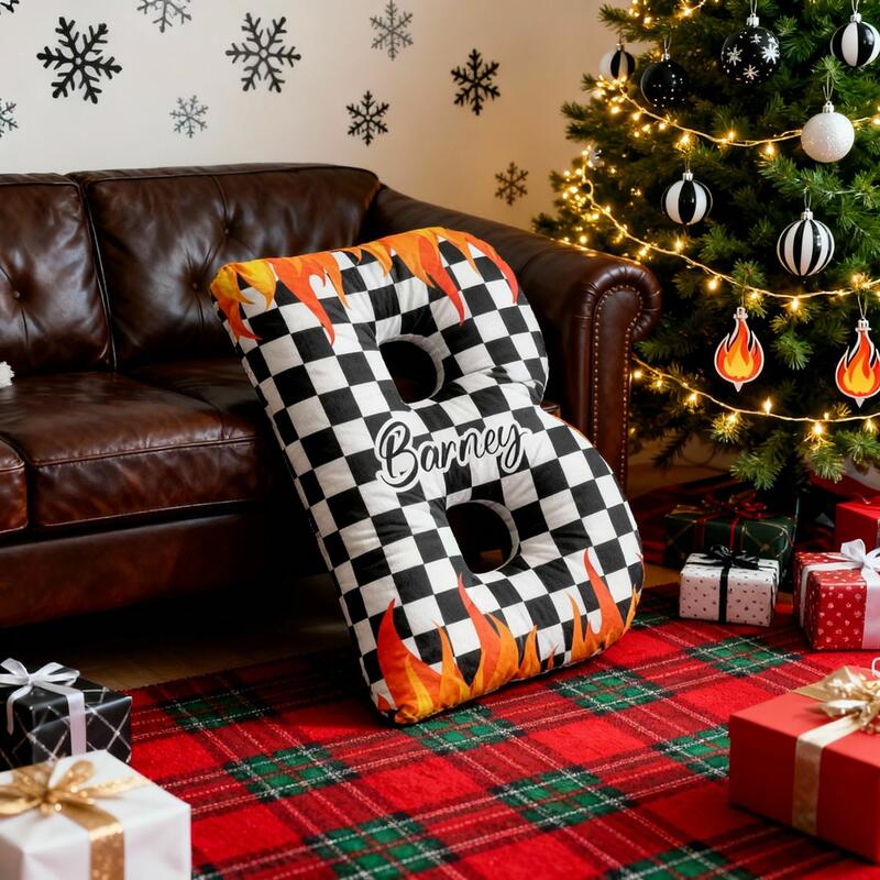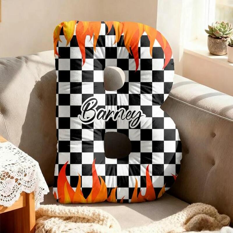 Personalized 3D Letter Pillows Black and White Checkered Pattern Pillow Home Decor for Kids