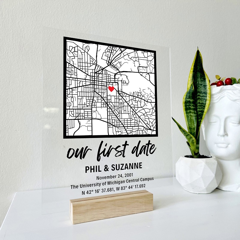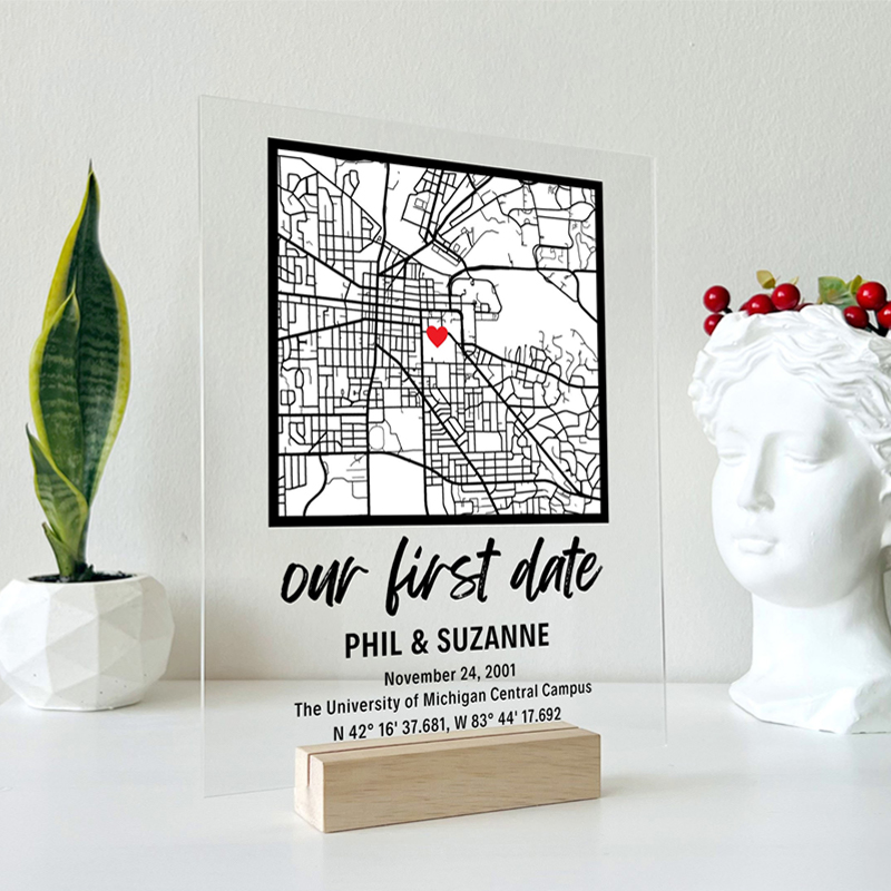 オリジナル 名前 日付 文字入れ マップ 地図 アクリル プレート 交際記念