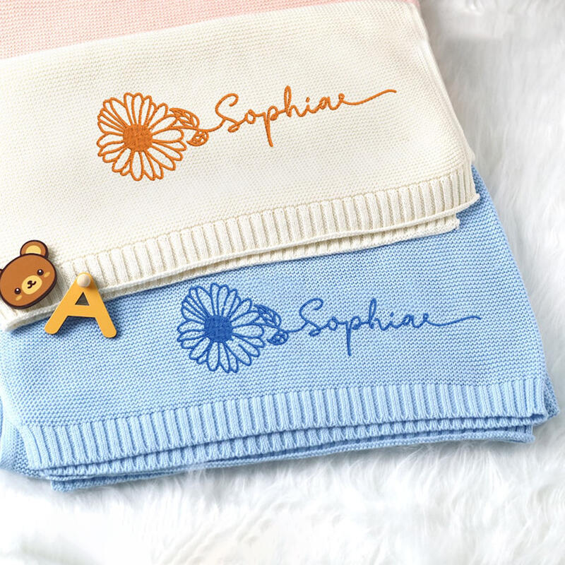 オリジナル 誕生花 文字 刺繍 ニット ブランケット 出産祝い
