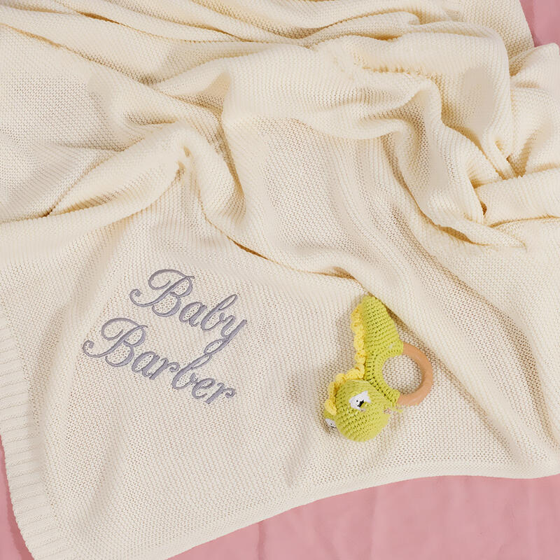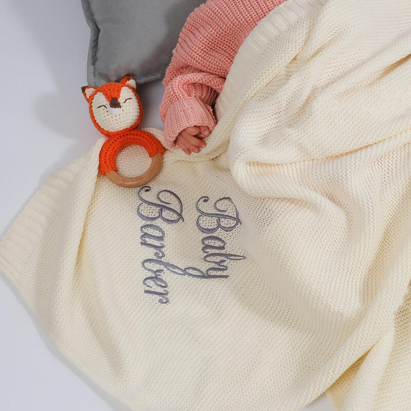 好きな言葉や名前刺繍入りで、「世界で1つだけ」のニットブランケットになります。