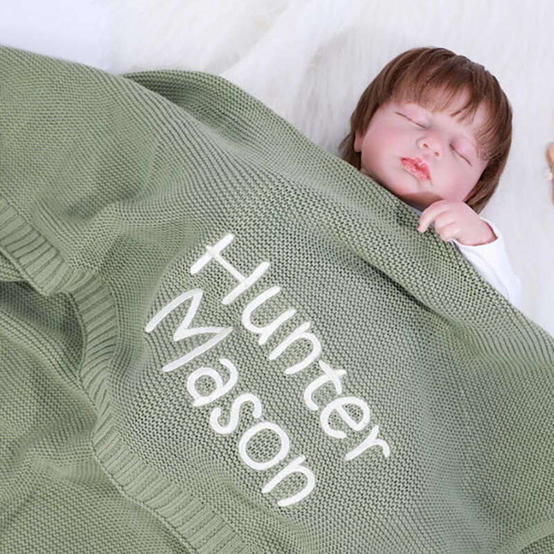オリジナル 文字 刺繍 ニット ブランケット 出産祝い