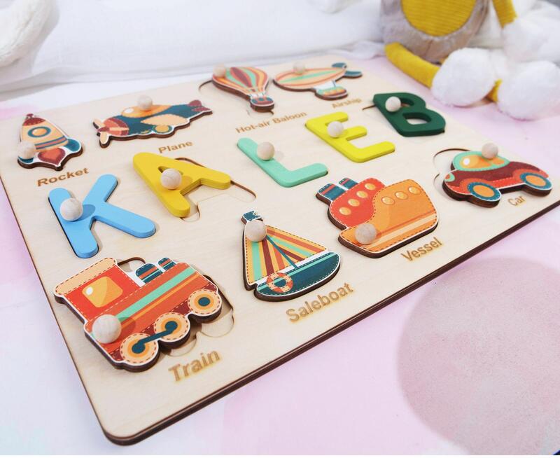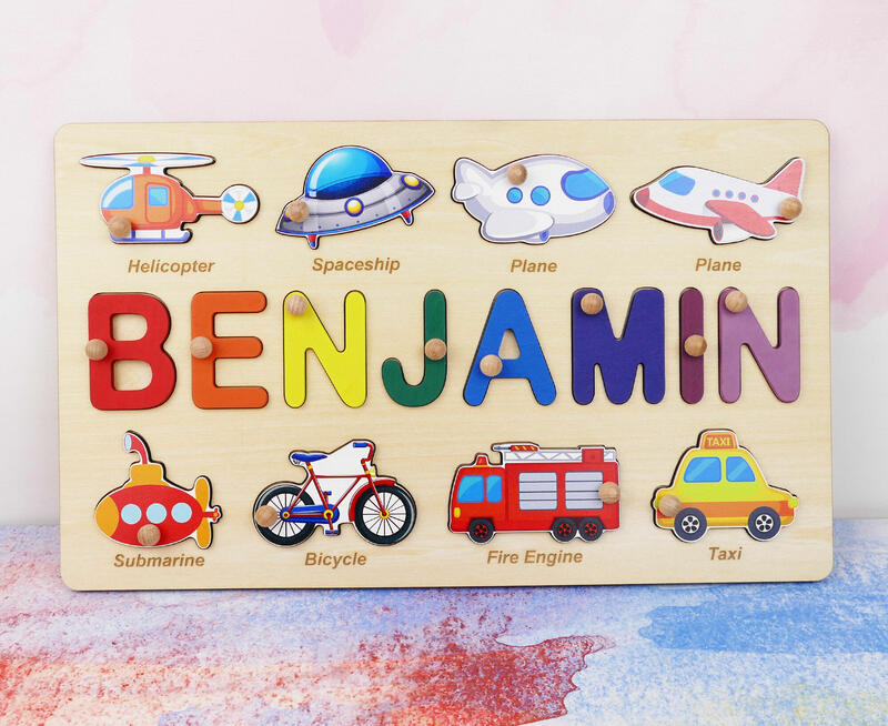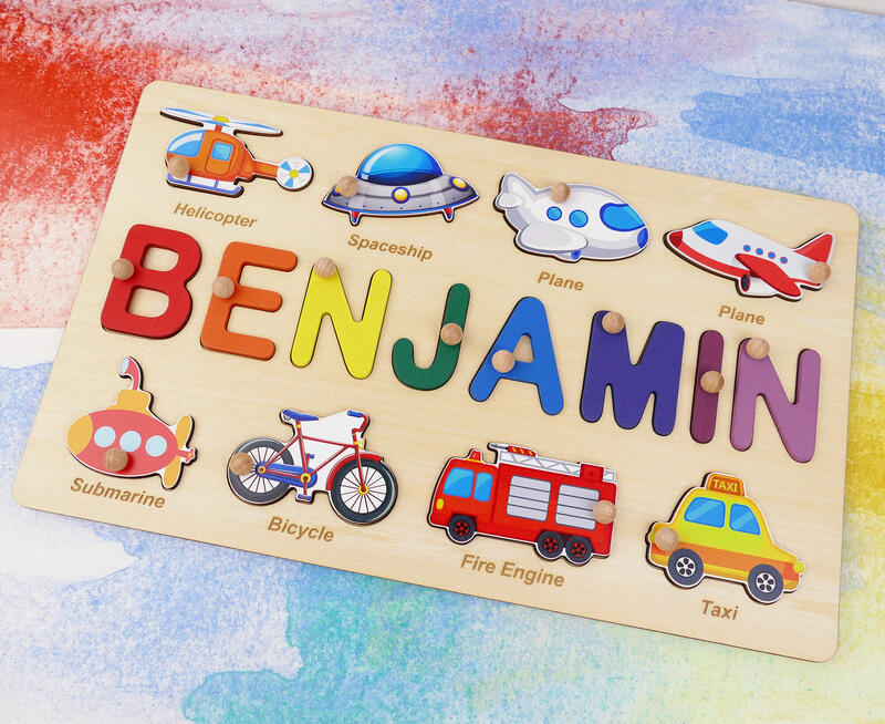 知育 玩具 木製 パズル 名前入り おもちゃ 幼児 キッズ 子供 8種類の乗り物選択可能