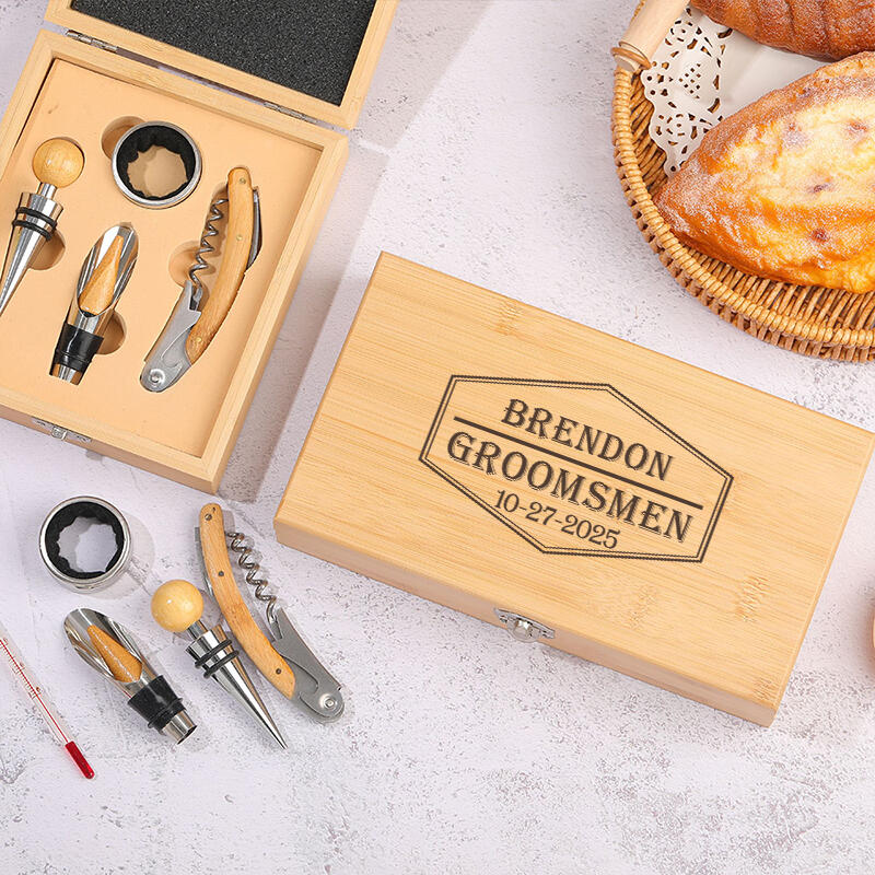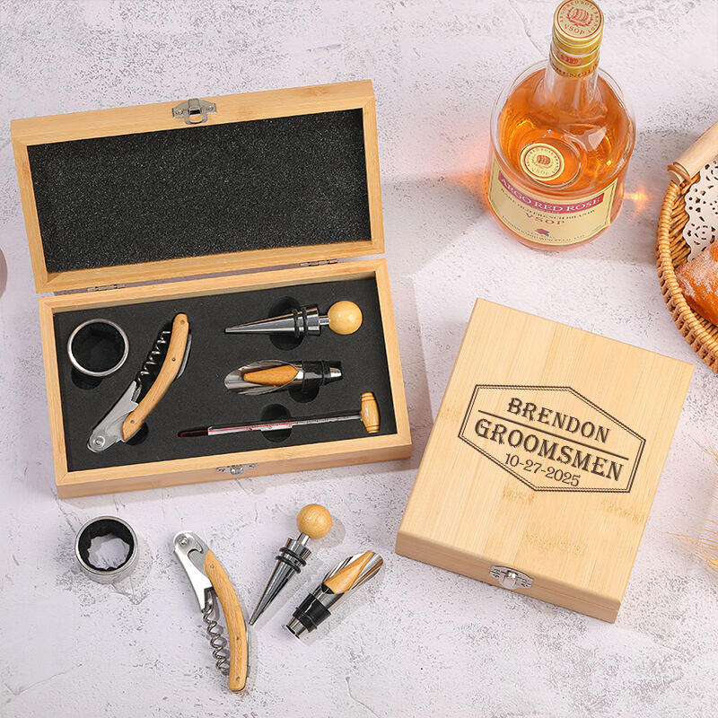 オリジナル竹製ワインオープナーセットです。優れた合金素材で、耐久性と実用性を兼ね備えています。
