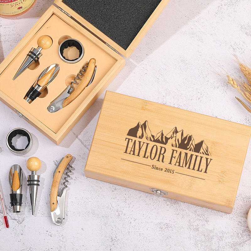 オリジナル竹製ワインオープナーセットです。優れた合金素材で、耐久性と実用性を兼ね備えています。