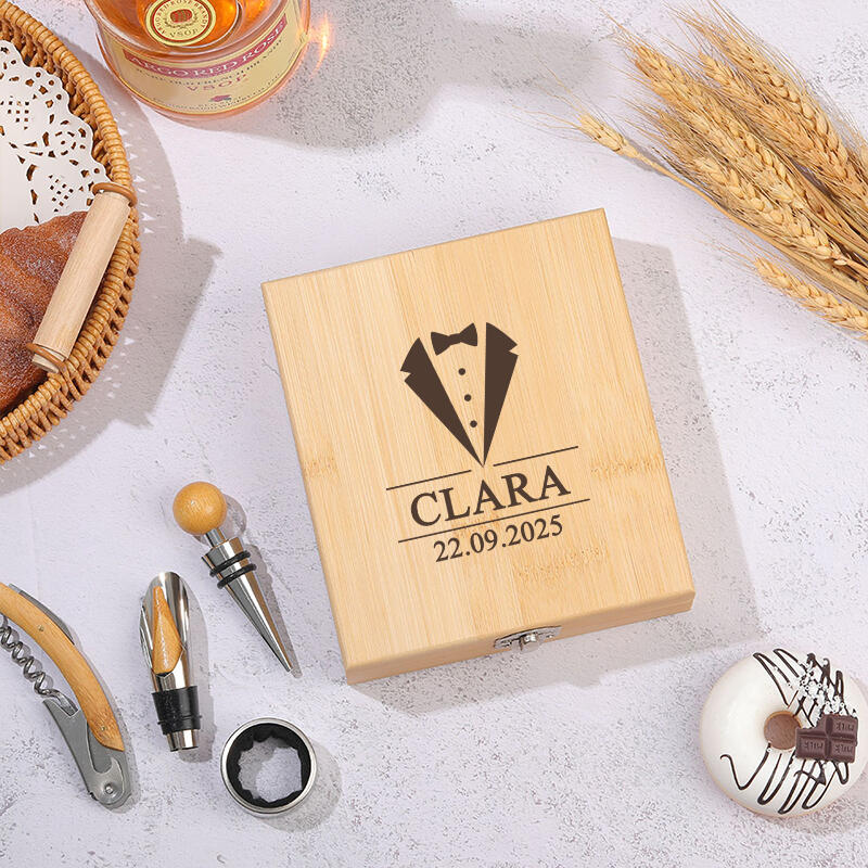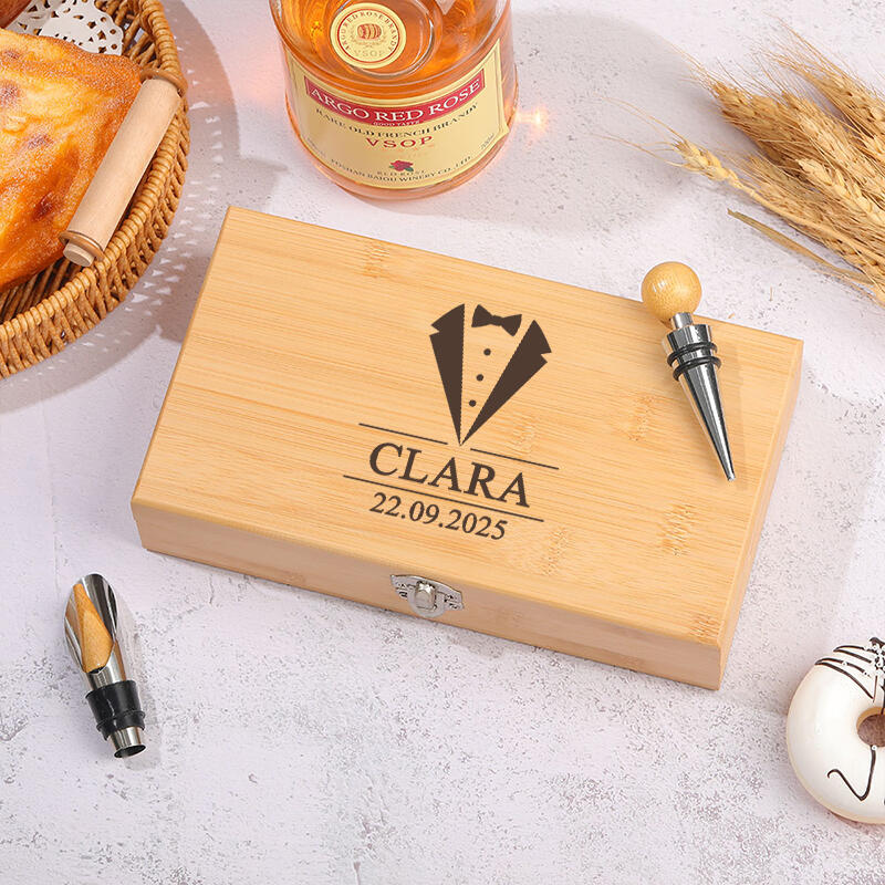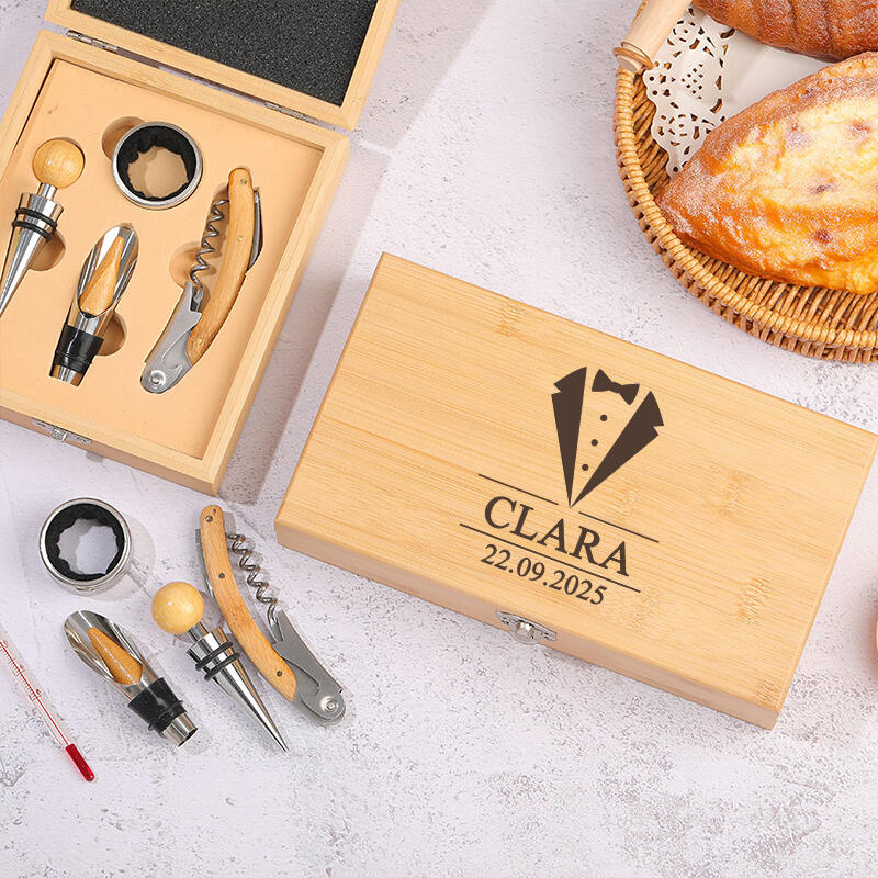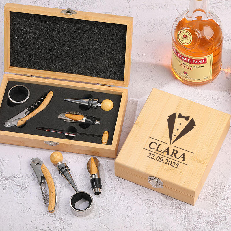 オリジナル竹製ワインオープナーセットです。優れた合金素材で、耐久性と実用性を兼ね備えています。