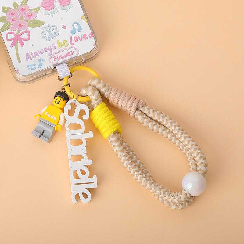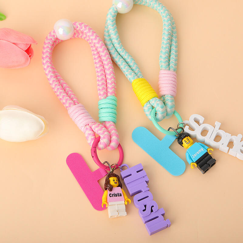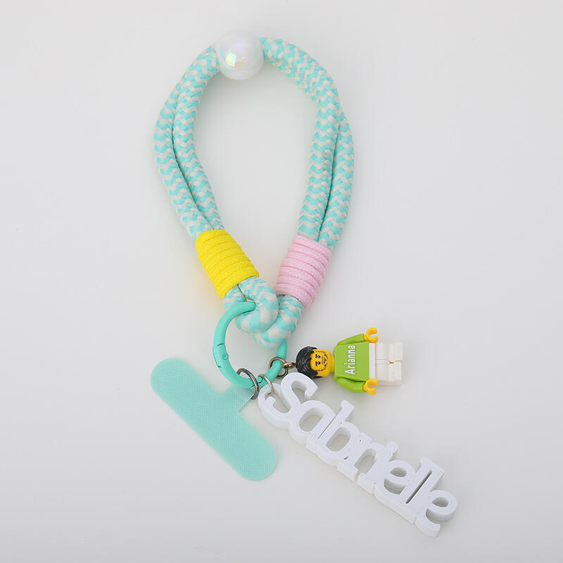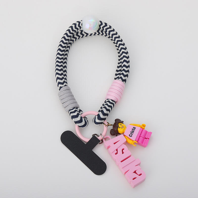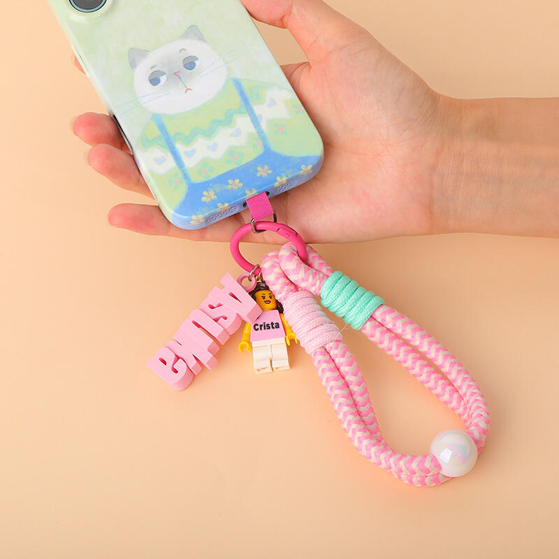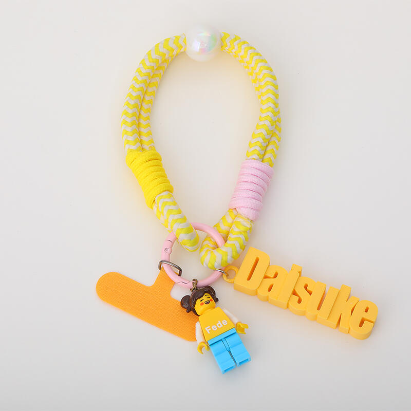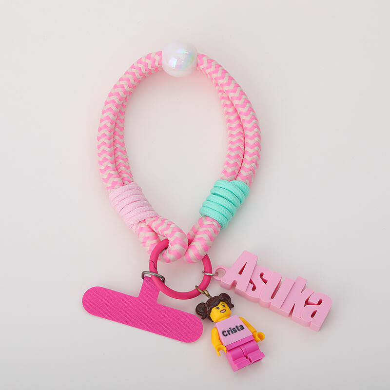 カスタマイズ 編み込み スマホハンドストラップ 落下防止 推し活 ネーム入り ミニフィグ
