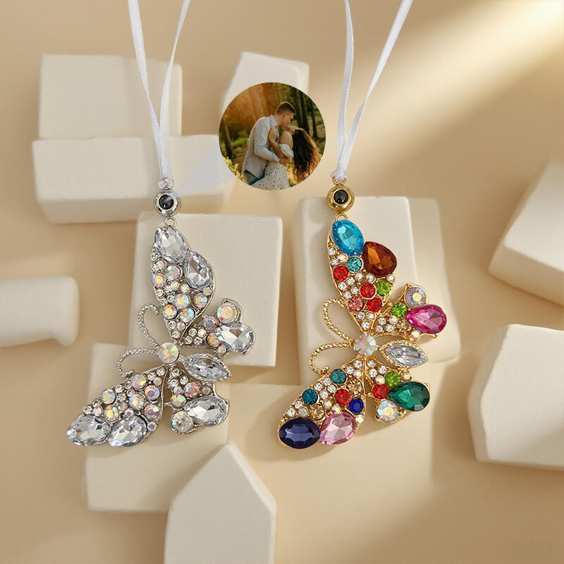 写真入り 投影 バターフライ形 キラキラ クリスマス オーナメント オリジナル