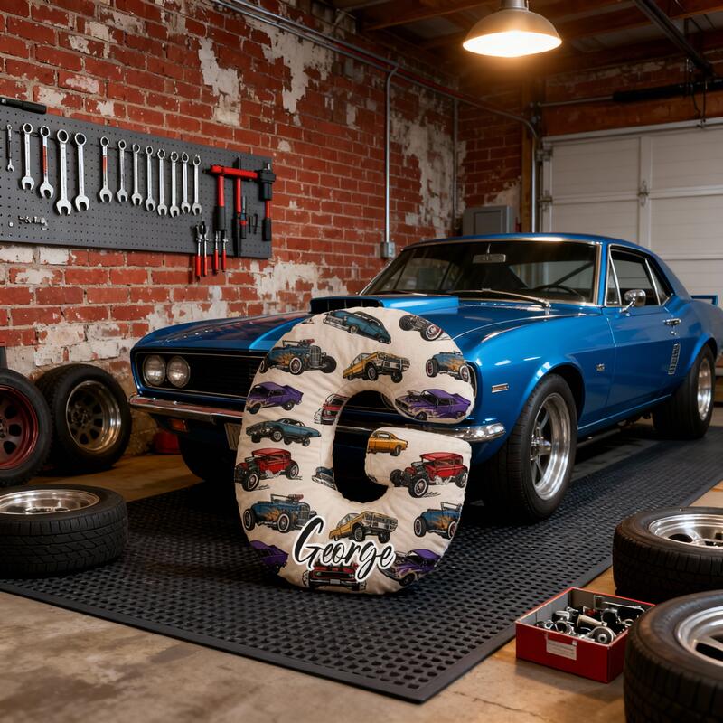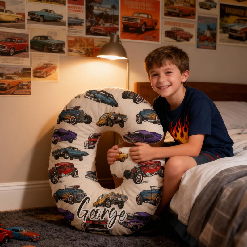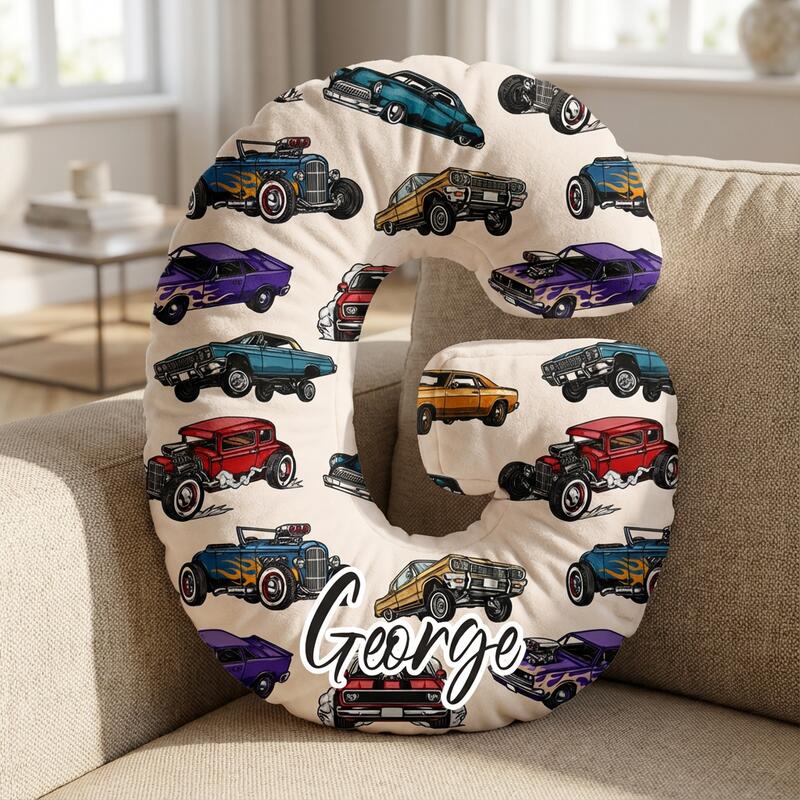 イニシャル形 名入れ 車柄 抱き枕 クッション オリジナル