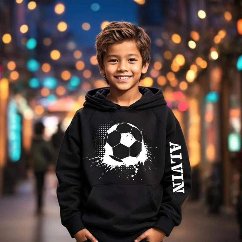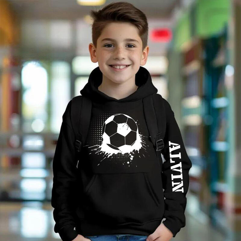 サッカー柄 名入れ パーカー 秋冬 普段着 スポーツ好き キッズ カスタマイズ