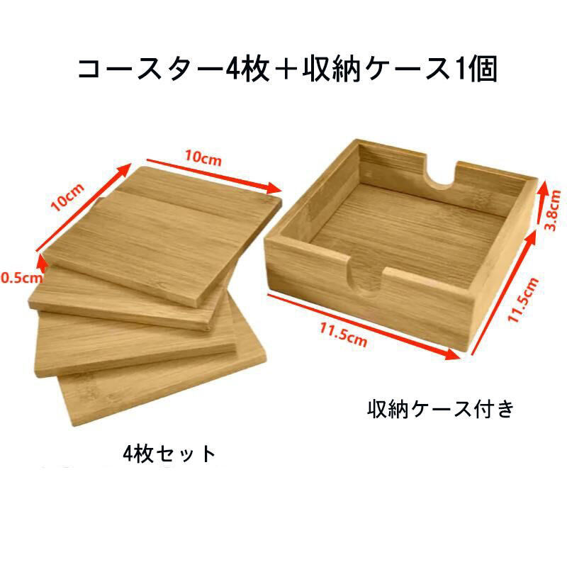 木製 名入れ コースター 4枚セット 収納ケース付き カスタマイズ
