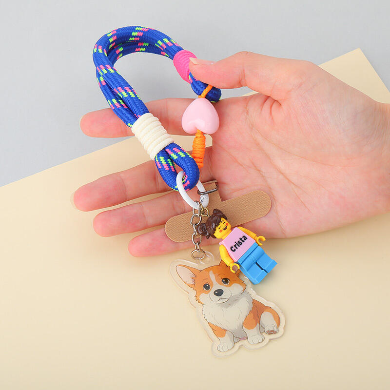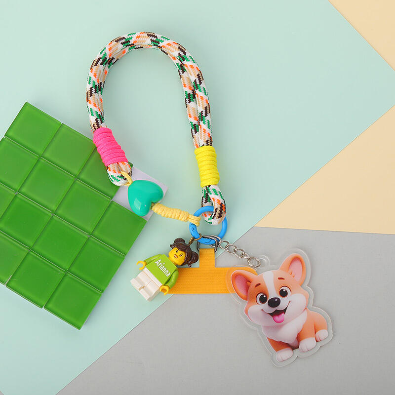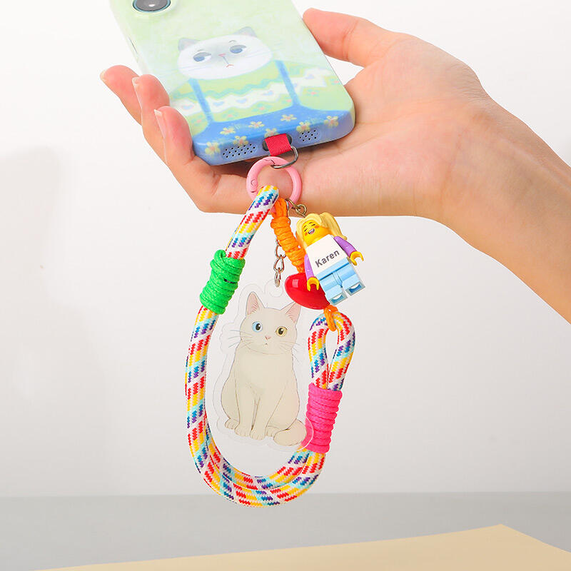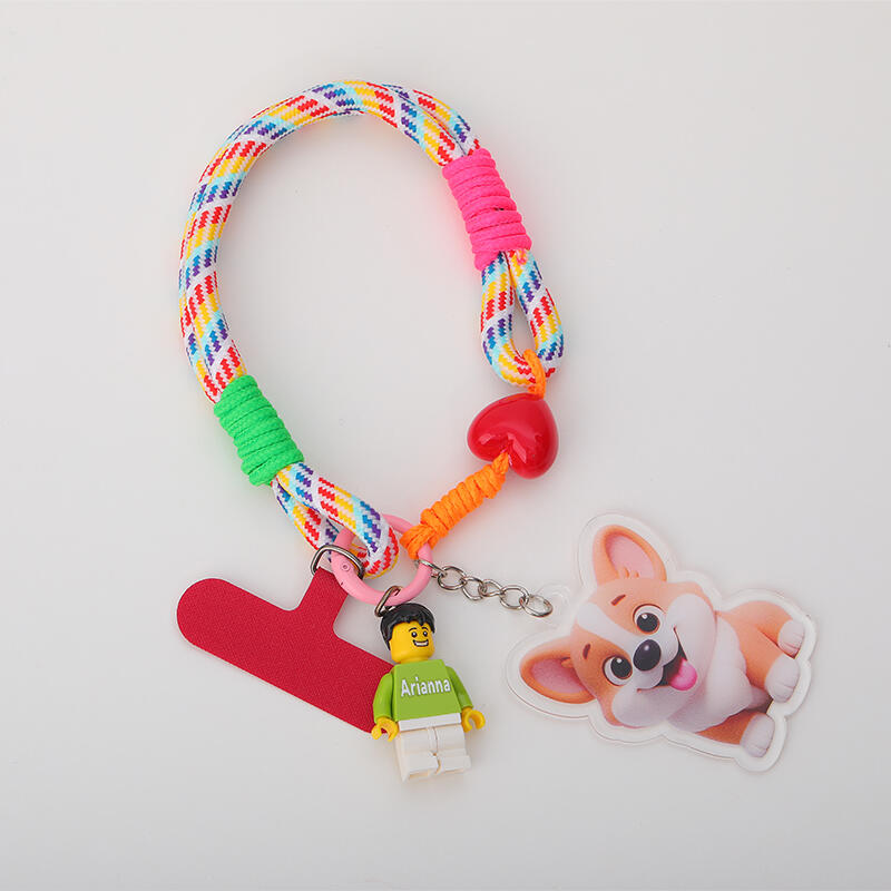 カスタマイズ カラフル 編み込み スマホハンドストラップ 落下防止 ミニフィギュア 漫画風 写真入り