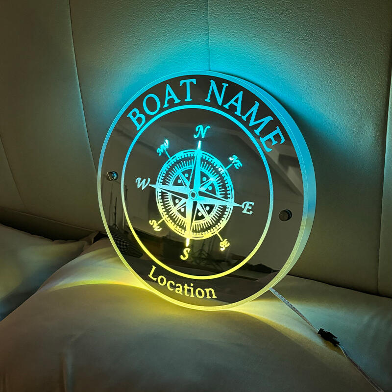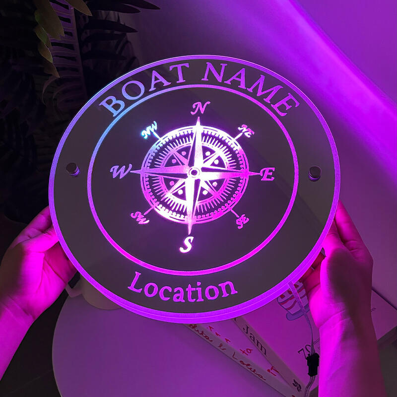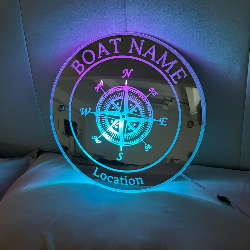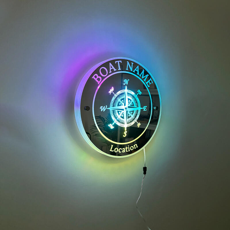 カスタムイズ コンパス 名入れ メッセージ入れ ミラー 発光 ライト 壁掛け 屋内装飾 リモコン付き 壁フック付き