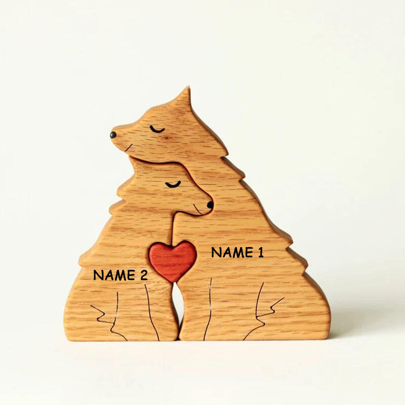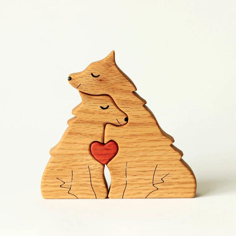 名入れ ウッド パズル ウルフ オブジェ 置物 インテリア