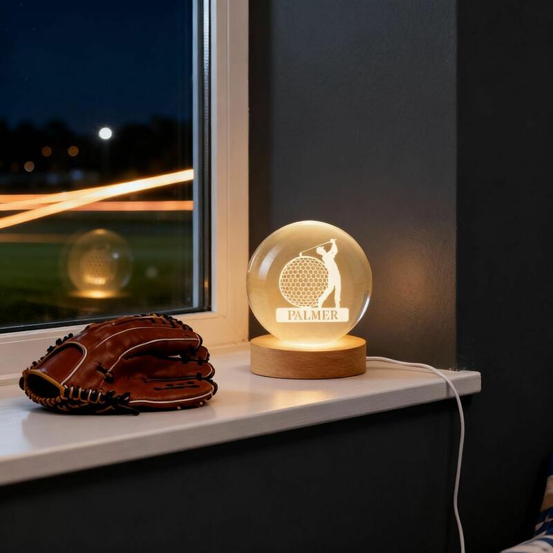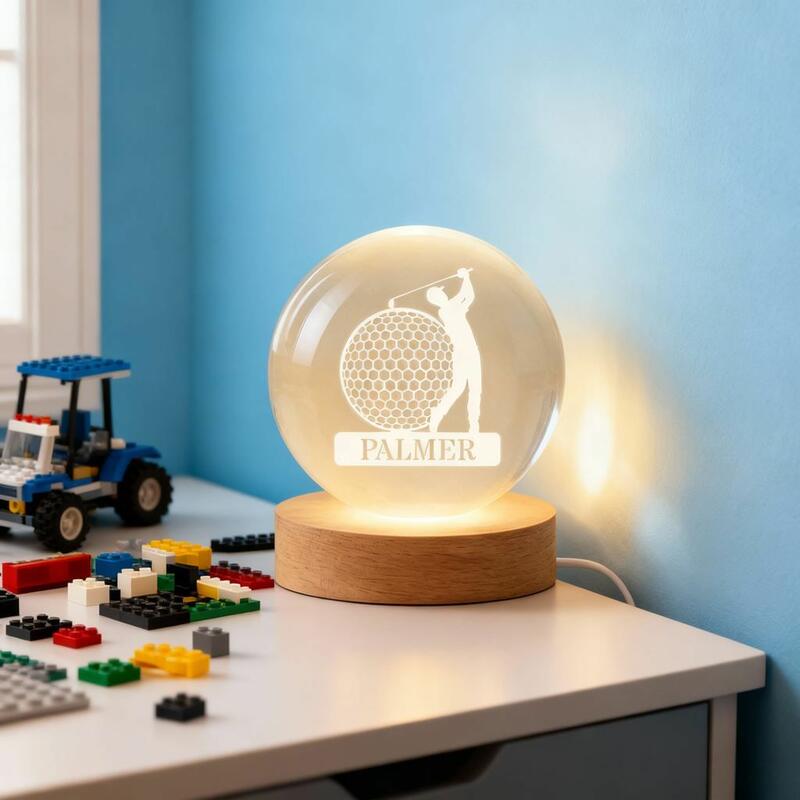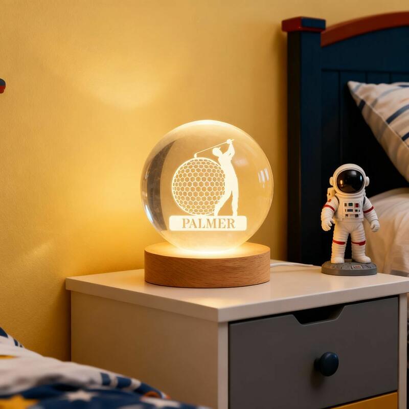 カスタマイズ 名入れ ゴルフ クリスタル ランプ LED台座付き