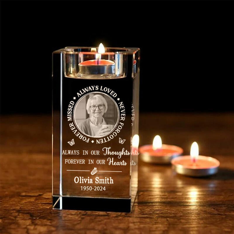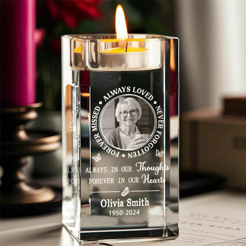 お好きな写真や名前、日付けなどを入れて世界に一つだけのクリスタル キャンドルホルダーが作れます。