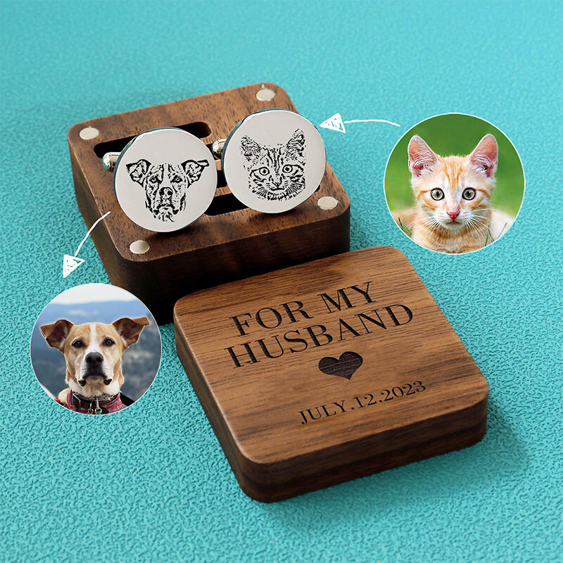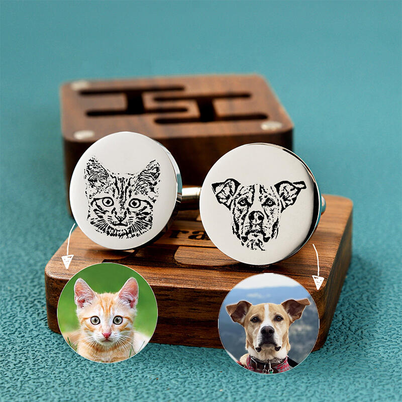 犬 猫 ペット 写真 刻印 カフス メンズ カフリンクス 2個セット オーダーメイド