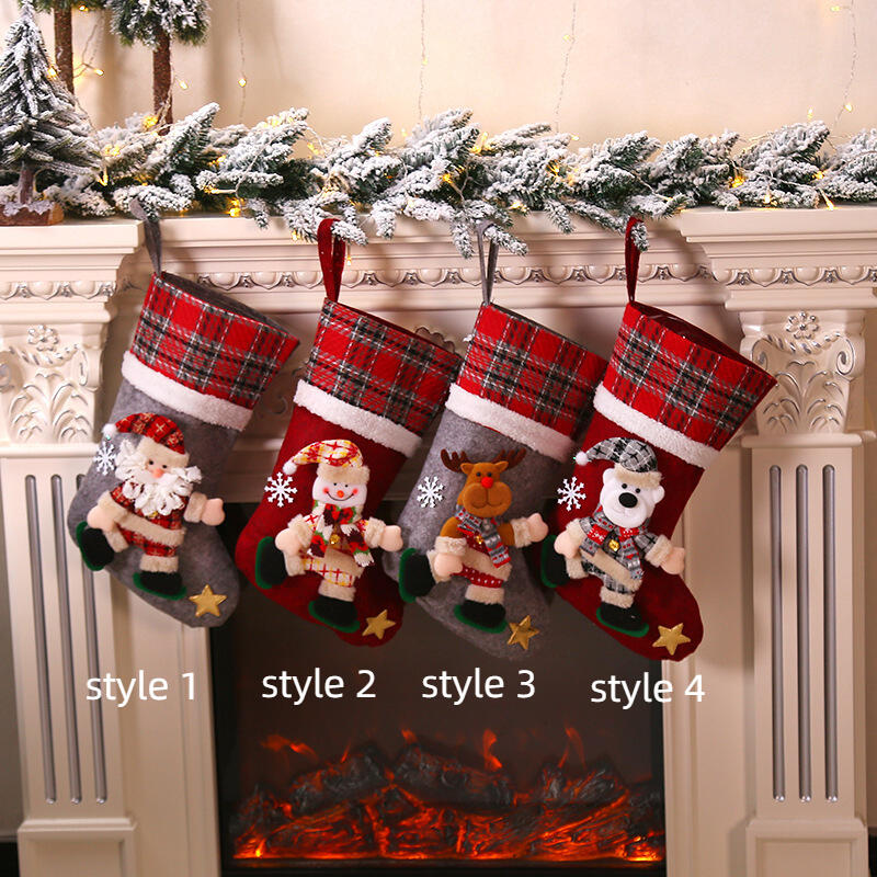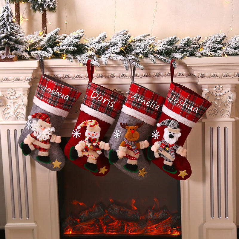 お名前刺繍入り クリスマスソックス ギフト飾り バッグ トナカイ サンタ 熊 雪だるま