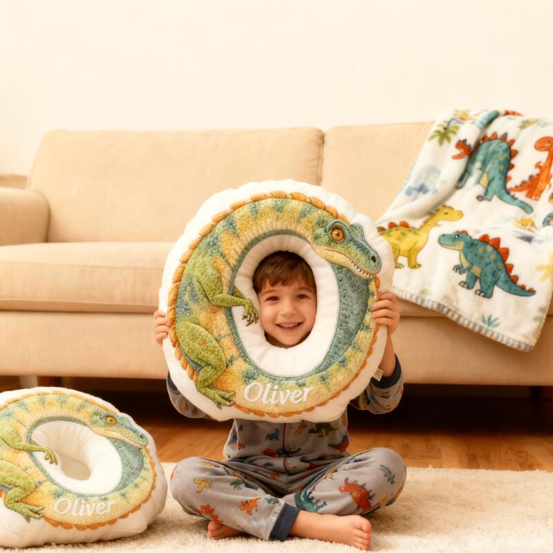 Personalized Dinosaur Letter Series Pillow Fun Cartoon Pillow Birthday Gift for Kids