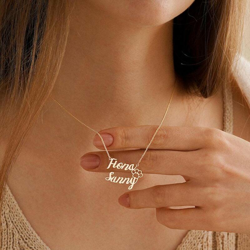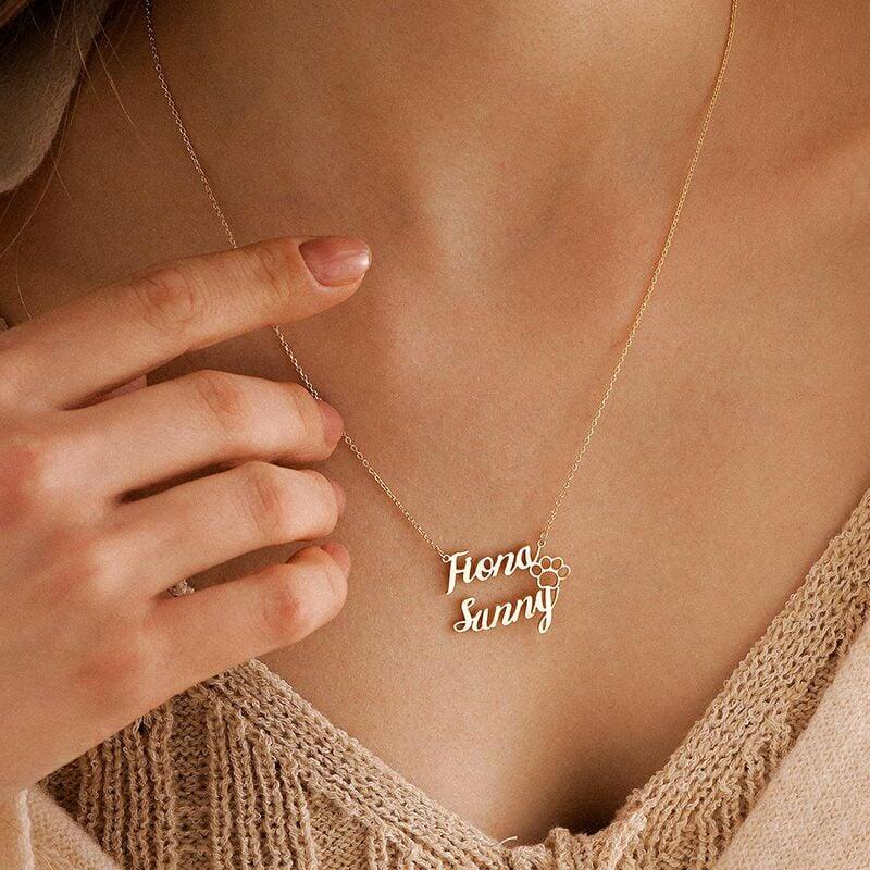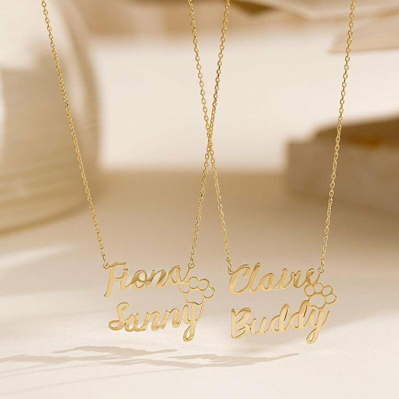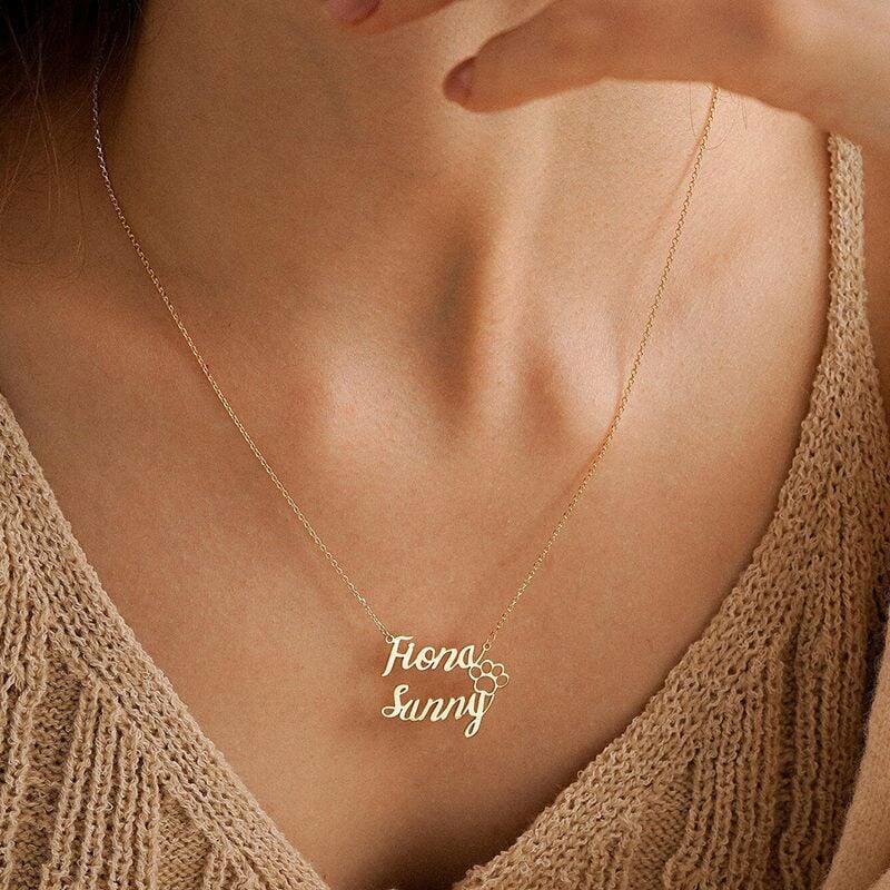 二つ名前入り ネックレス 肉球 オーダーメイド
