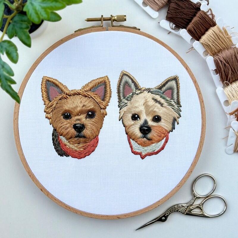 アップロード頂いた写真やメッセージなどの特徴にこだわり、1点ずつ手刺繍で丁寧に仕上げる刺繍ならではのあたたかい作品です。