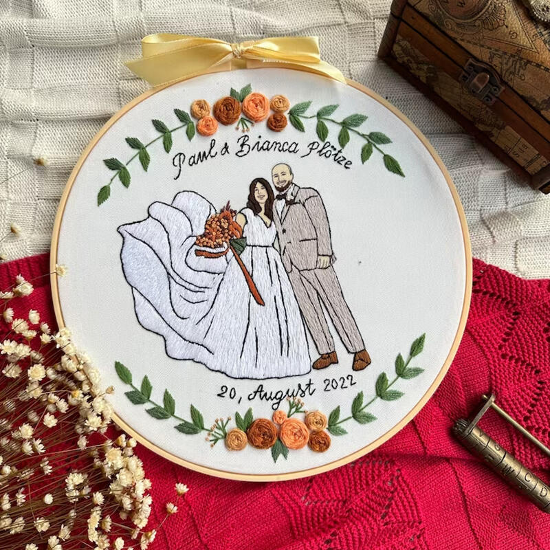 アップロード頂いた写真やメッセージなどの特徴にこだわり、1点ずつ手刺繍で丁寧に仕上げる刺繍ならではのあたたかい作品です。