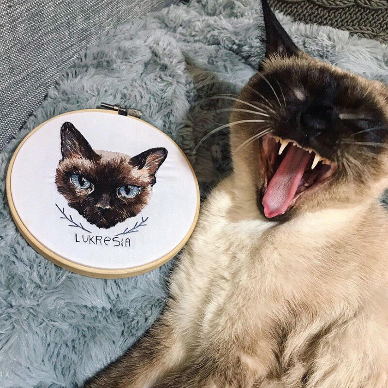 アップロード頂いた写真やメッセージなどの特徴にこだわり、1点ずつ手刺繍で丁寧に仕上げる刺繍ならではのあたたかい作品です。
