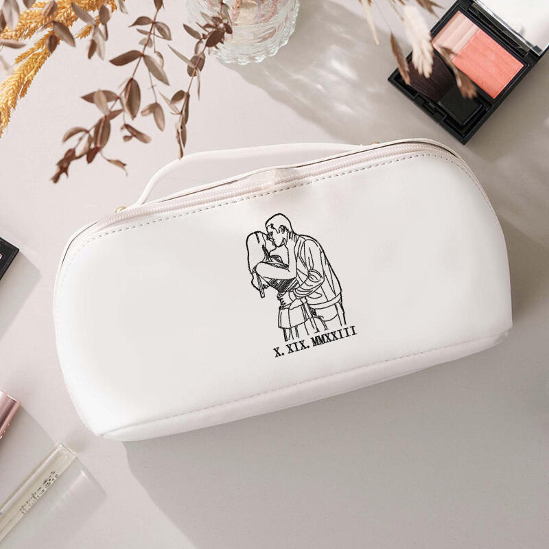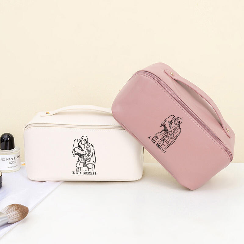 写真いり カップル 白 ローマ数字 ファスナー式 ジュエリーボックス 化粧バッグ オーダーメイド