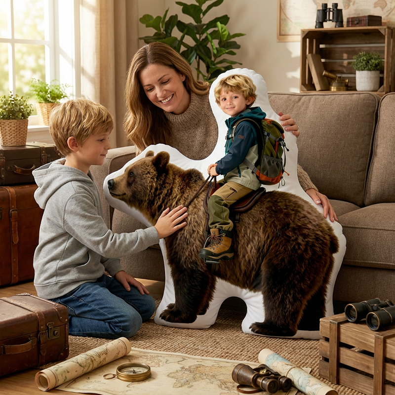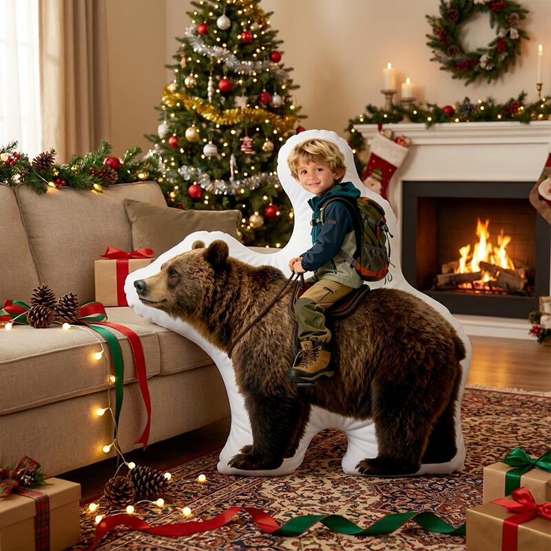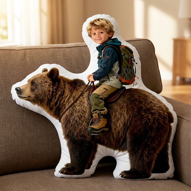 Personalized Face Portrait Pillow with Bear Pattern Interesting Gift for Kids